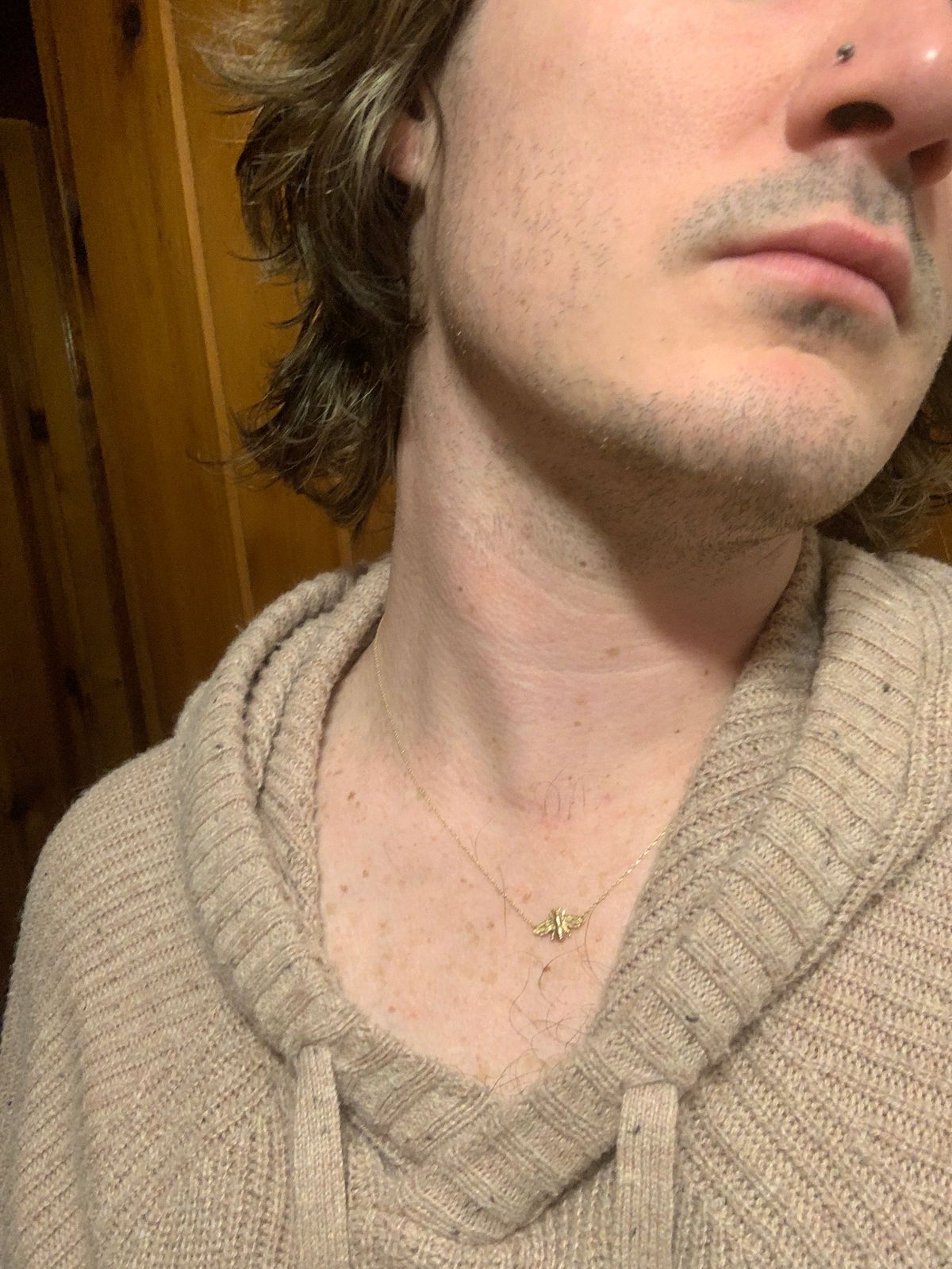This is one of my first jewelry purchases for myself and I couldn’t bee (lol) happier. I ordered the 15” and it was a bit tight for my thicc neck. Exchanging for the 17” was easy and painless. I love my necklace and the way it looks. I work in the trades and have accidentally caught it a few times and the strength of the chain and craftsmanship are nothing to bat an eye at. Steadfast and elegant. A timeless start to my shiny adventure ❤️