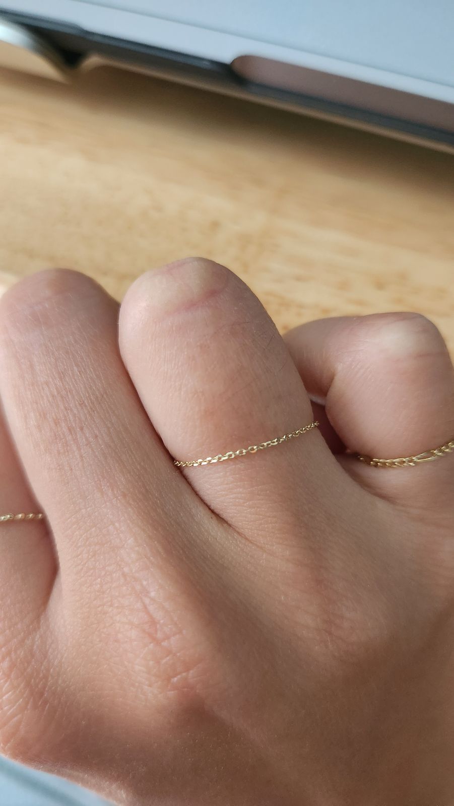 I added this to my cart as an impulse purchase and absolutely adore it. It's so small and so light - I sized up and that was definitely the right choice. It stacks perfectly with my other two everyday rings (not from AuG) but is the only one that I just leave on.