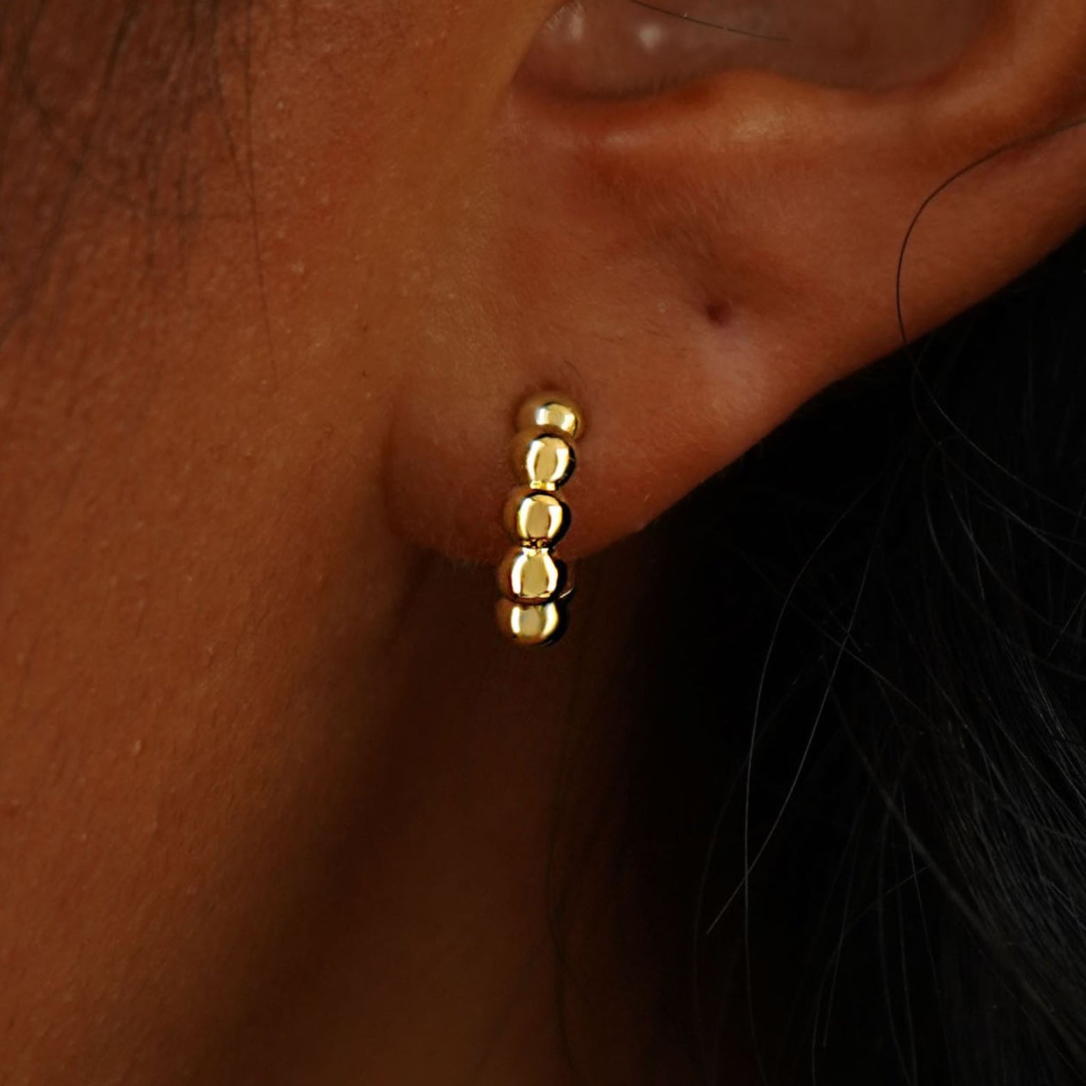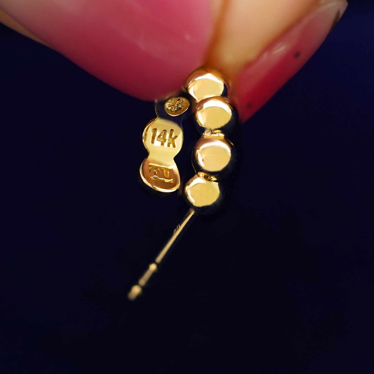 Sophisticated and stylish, these gold hoops have it all. Each elegant bead is puffy in the front with an open back, making them lightweight and comfortable—but they won’t dent either thanks to their strong solid and thick gold construction.