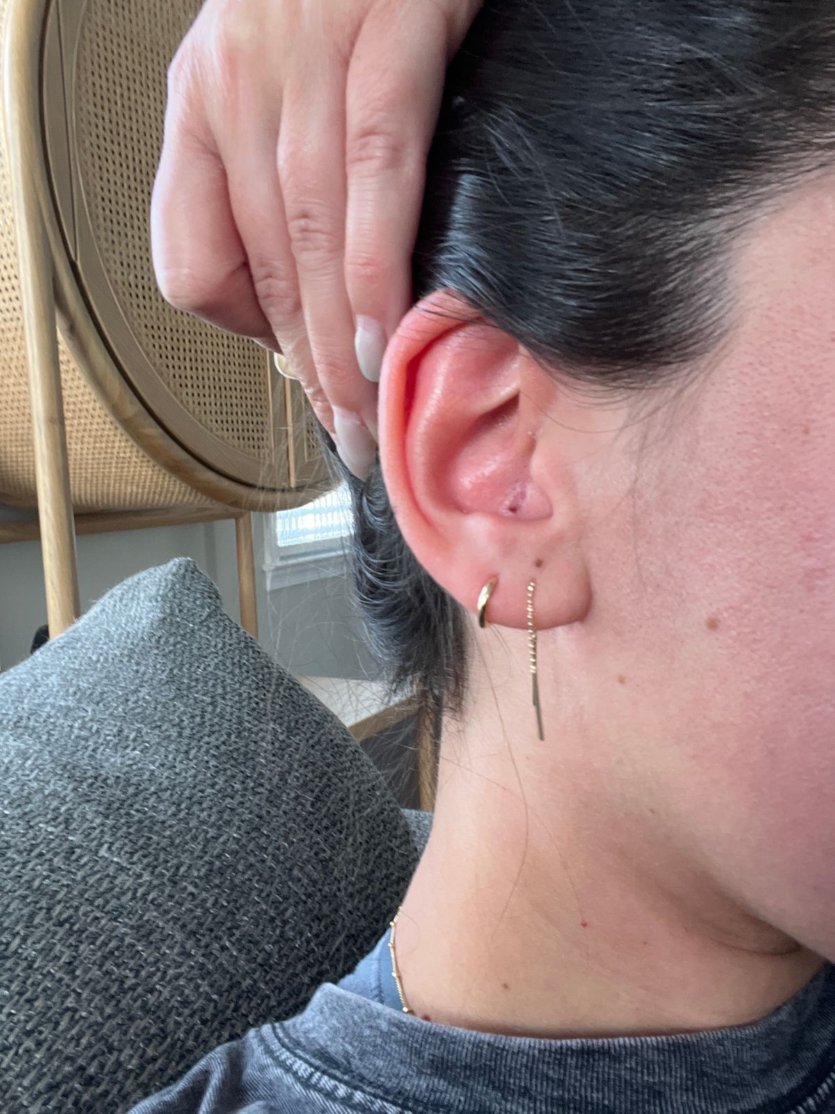 I've been wanting to wear earrings again for the longest time - but I've always had problems with earring backs irritating the skin behind my ear to the point where I have permanent scars/dimpled skin. I picked up a pair of the mini threaders and the small huggies hoops since neither have sharp points/protruding backs. And they work wonderfully! They feel awesome. They LOOK awesome. I've gotten so many compliments!