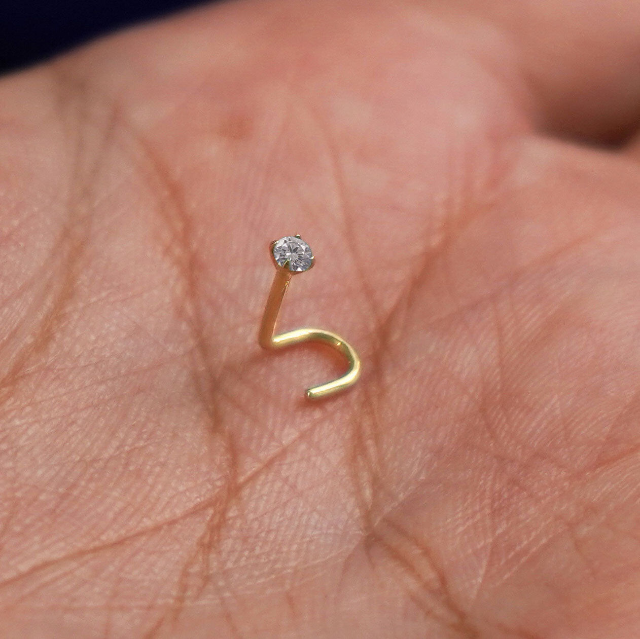 A model's palm holding a Diamond Nose Stud to show the details of the screw