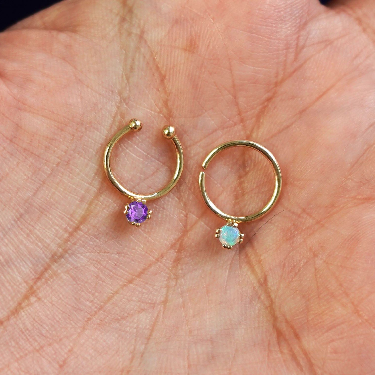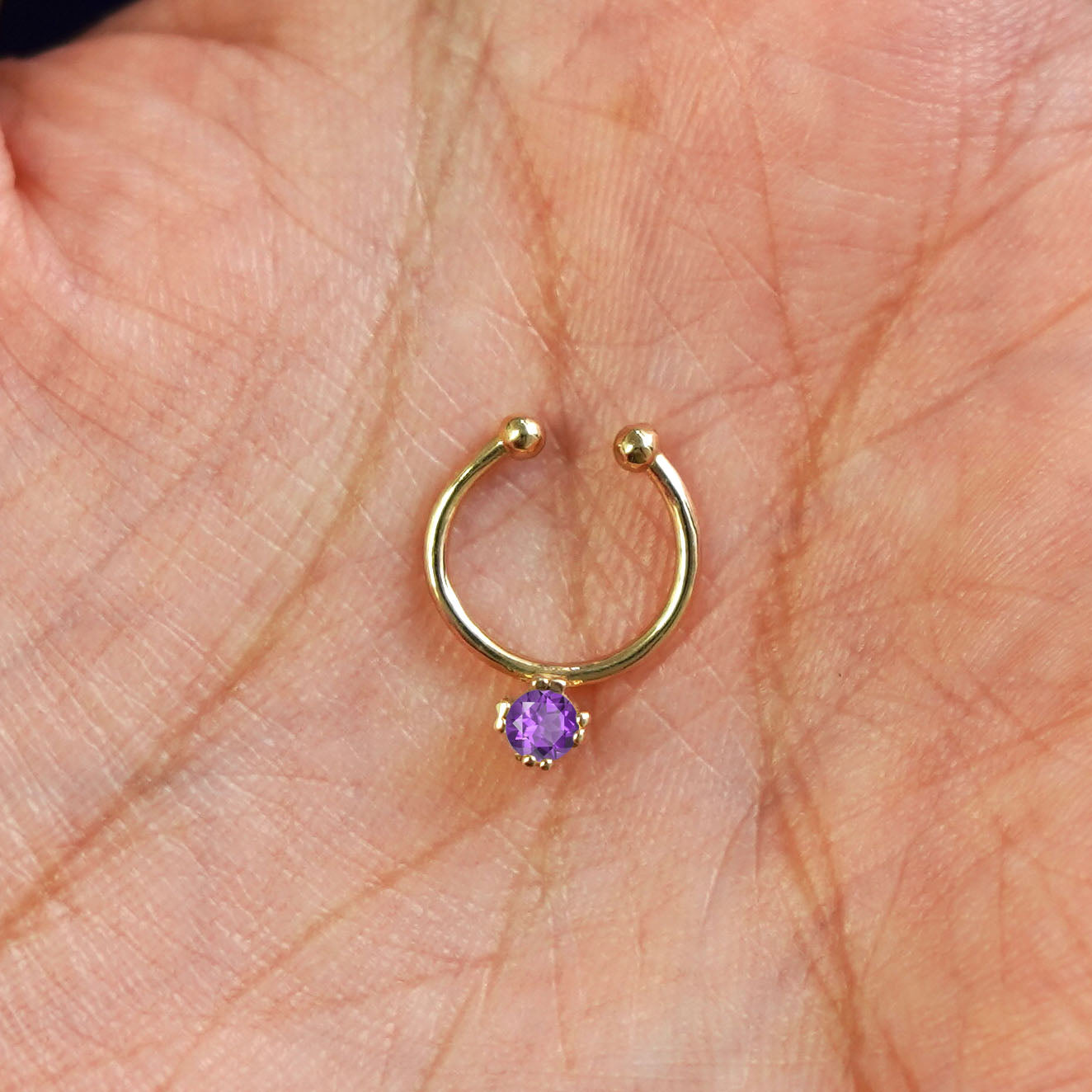 I'm in love with the gemstone septum. It makes me feel powerful and more grounded, for some reason. It's very well made, and I've gotten my face in some pretty wiry towels but the gemstone septum stays in my nose!