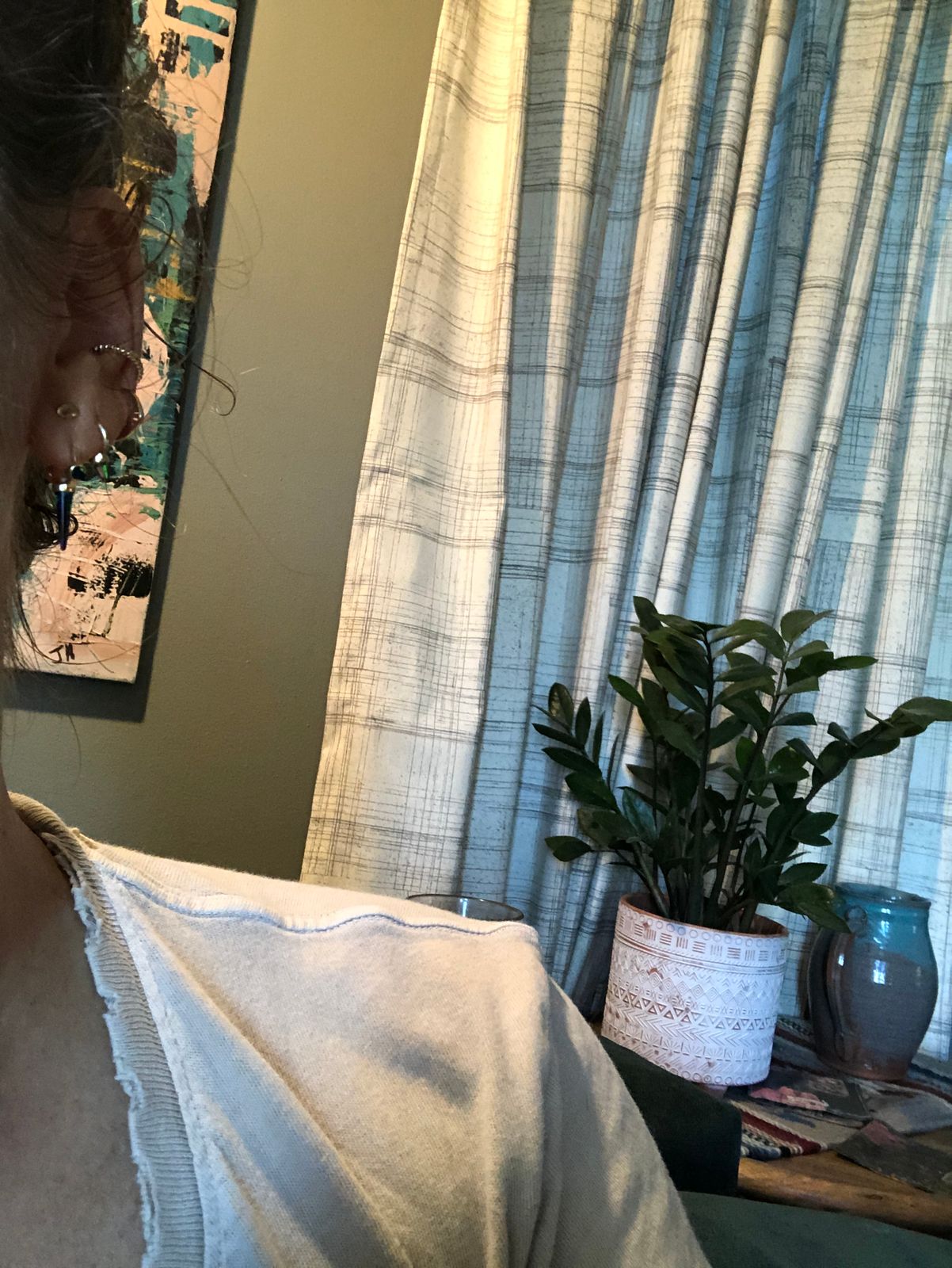 A close up of someone's ear with a 14k white gold rope cuff attached on their  outer ear.