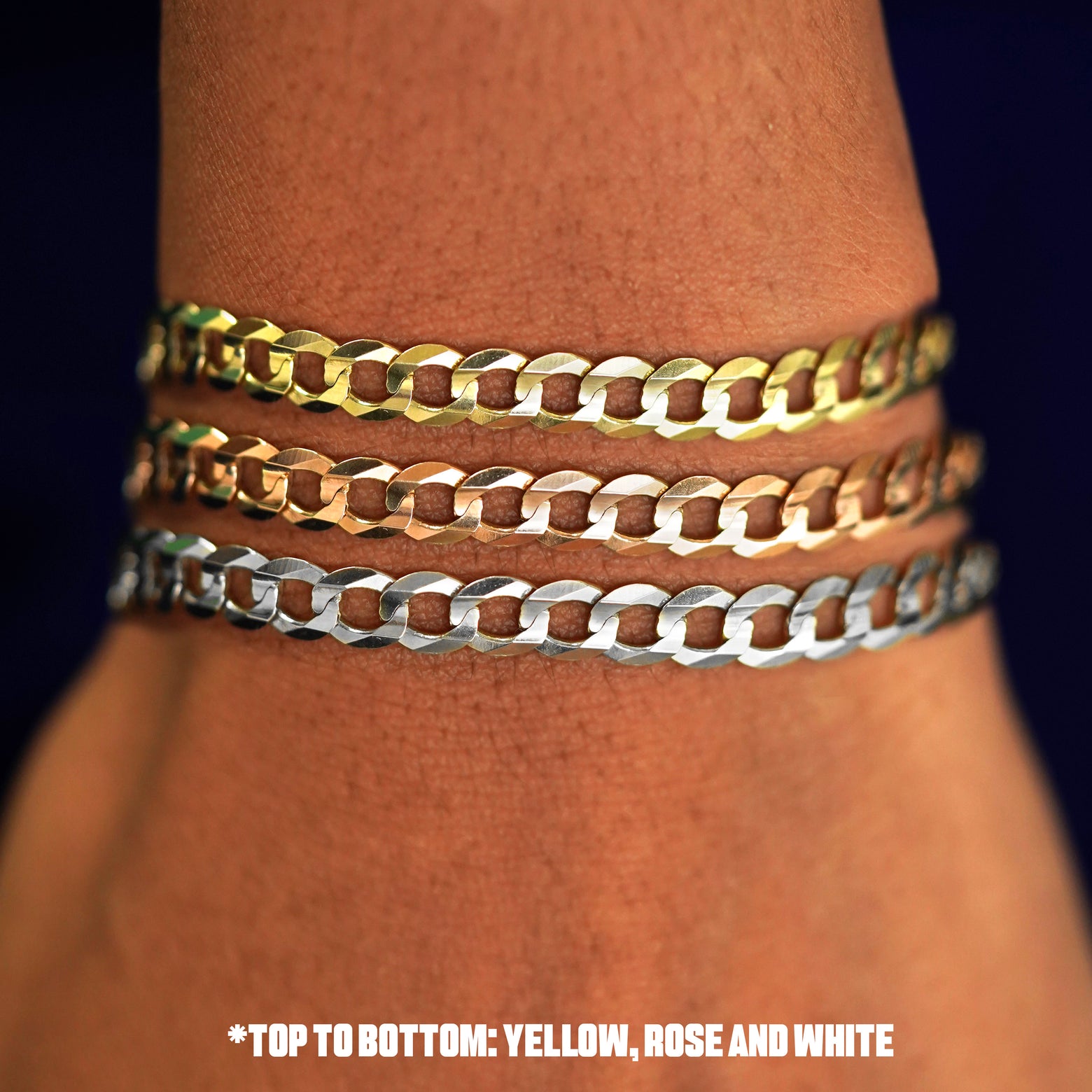 A solid gold Curb Chain Anklet resting on the back of a model's hand