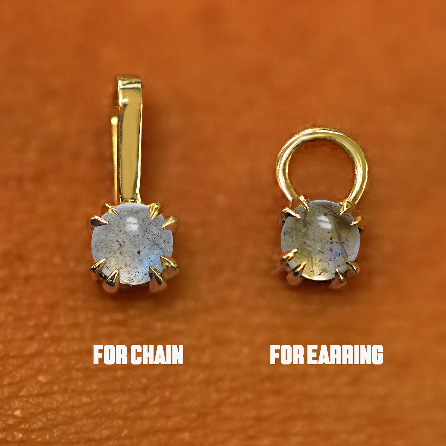 Choose the "for earring" option if you are buying charms to add onto any studs, hoops, or threaders up to 2.2mm in thickness. Our unique charms fit all of our hoop earrings except our Wide Hoops.
