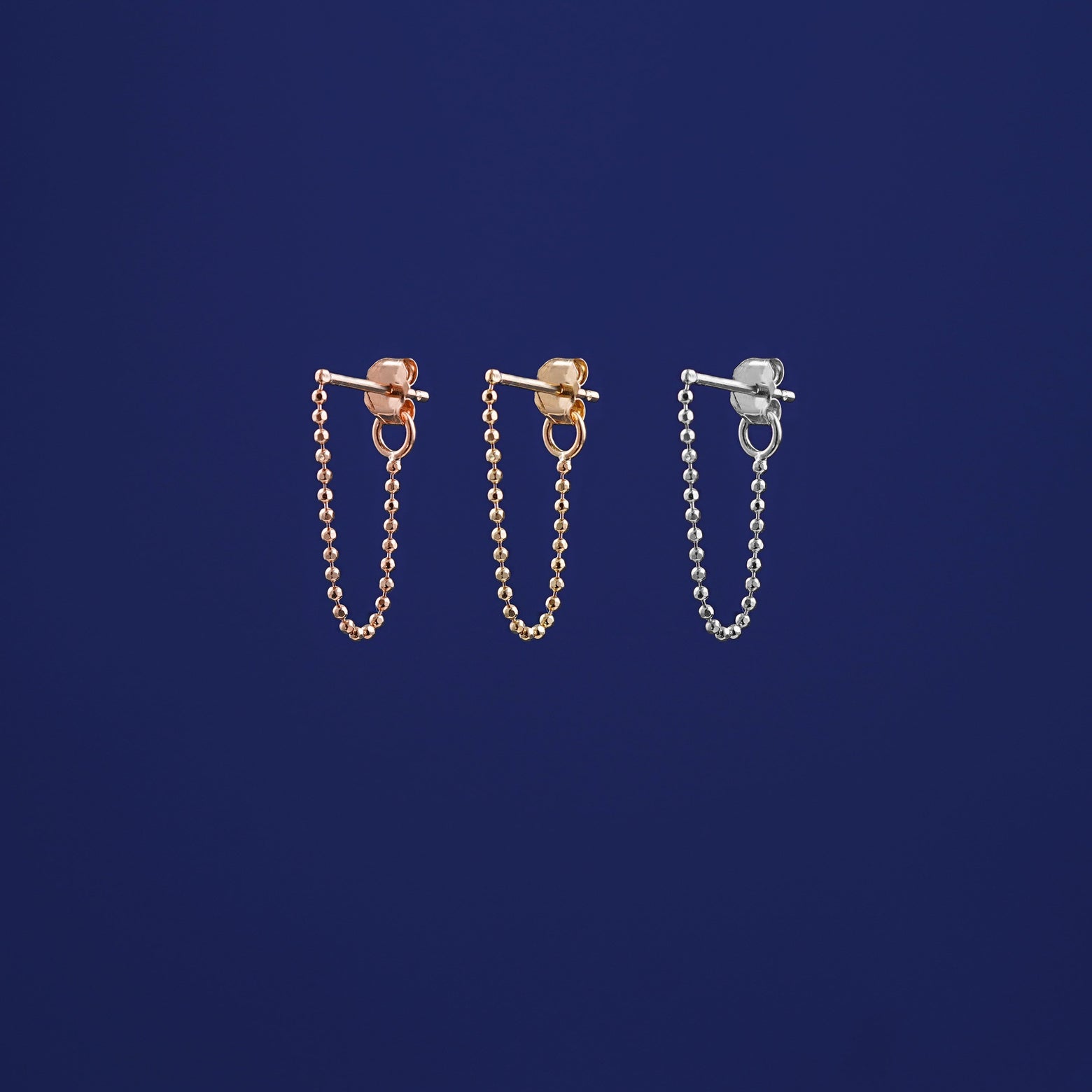 I ordered these in rose gold, they are very beautiful. However, they are tricky to grasp securely when putting them in or taking them out, just the post and one bead of the chain. Take care to put them in slowly and remove them slowly to avoid breaking the chain.
