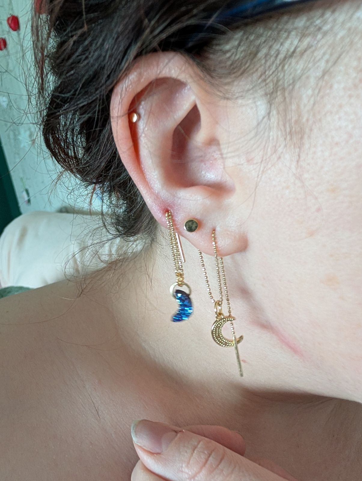 I absolutely love these threaders. I also have the extenders which I use in different ways. There are sooo many ways to wear these, and I've tried many and they all look gorgeous. I have purchased several times from Automic Gold and I love their mission, honest advertising, inclusivity, and beautiful recycled gold. I added my own charms in a couple of these pics but I have AG charms on my wishlist :)