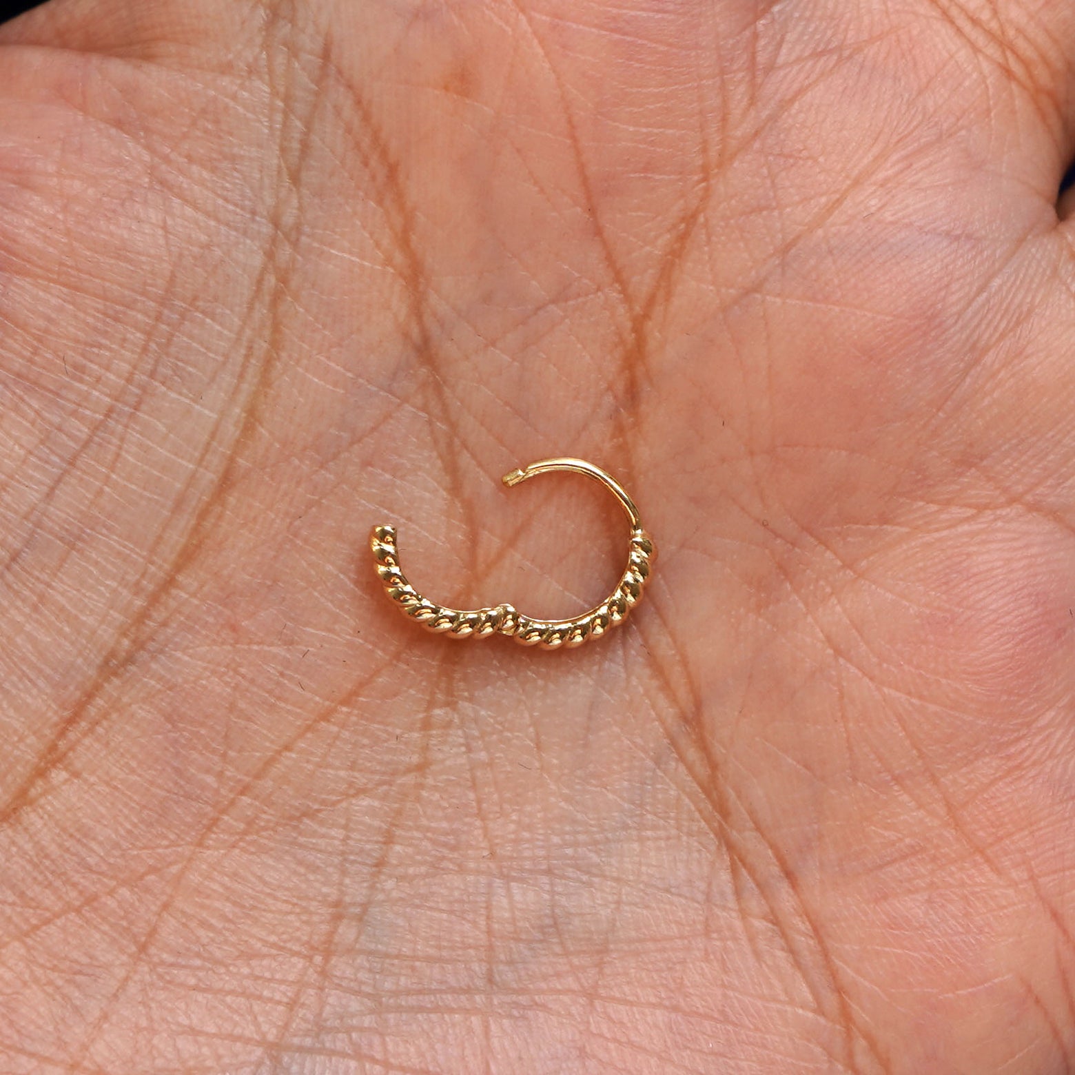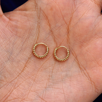 I purchased a set and they are beautifully made and high quality. However, I noticed one of mine wasn’t so tight. It would pop loose now and again from very light pressure and I lost it within a few weeks of having them. I suggest taking these out before sleeping, showering, etc. They aren’t heavy or big of course, so it may be hard to notice if one goes missing until it’s too late.