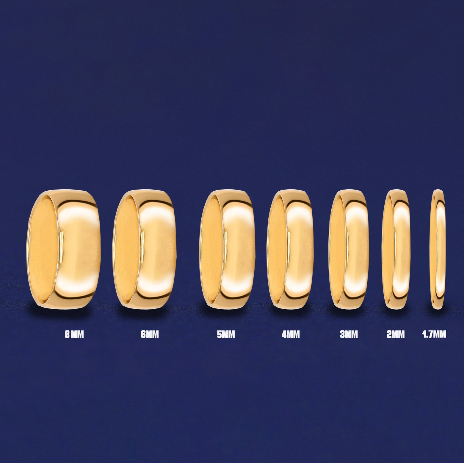 Wedding bands of the same width will look different on hands of different sizes. Here is a preview of how the Industrial Mirror Band in the same width looks on models of different sizes.