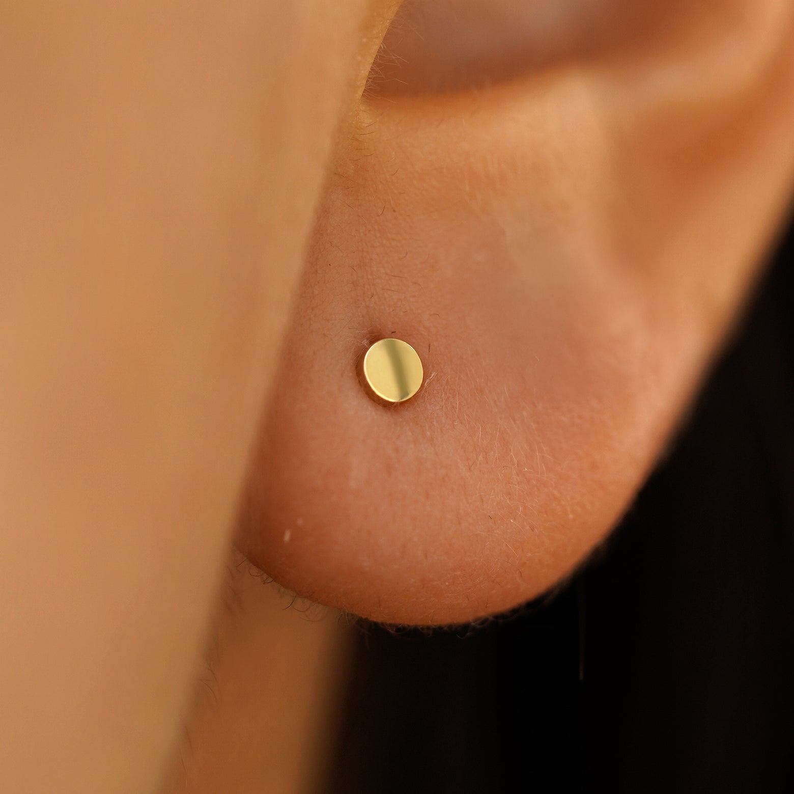 Delicate and classic, these tiny stud earrings are the perfect minimalist jewelry. Our dainty circle studs are designed to be flat and thick so they fit just right. Pair with our other sustainable gold circle earrings for that dynamic duo look. Whether you’re fighting crime or passing time, this look is solid (gold).