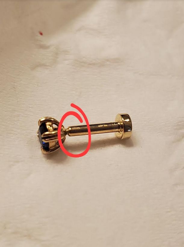 I wore this stud in my helix for a month after getting it, and my one problem with it is that I couldn't push the stud post all the way into the tube without a little bit at the front sticking out, and the difference in diameter meant that I would have to push the jewelry back and forth and twist it in the piercing hole to keep it from getting the thinner part stuck inside. I don't have this issue with the piercing-grade titanium studs I have from the studio, and I tried to push the post all the way in when I took the piercing out but I still couldn't get it to fit completely in. It's quite a sparkly and luxurious piece and I had no issues with the quality of the materials themselves but I think I'll only wear it for special occasions instead of as an everyday "sleeper" piercing.