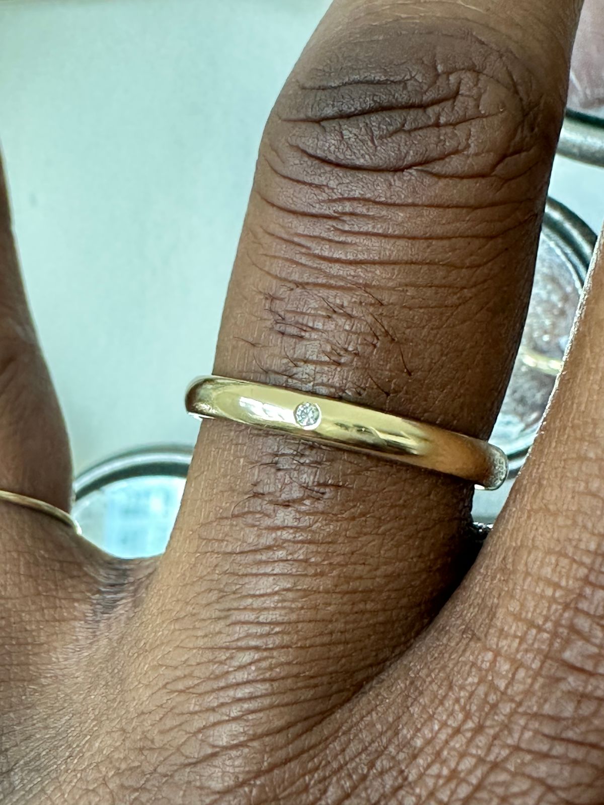 Wedding bands of the same width will look different on hands of different sizes. Here is a preview of how the Industrial Mirror Band in the same width looks on models of different sizes.