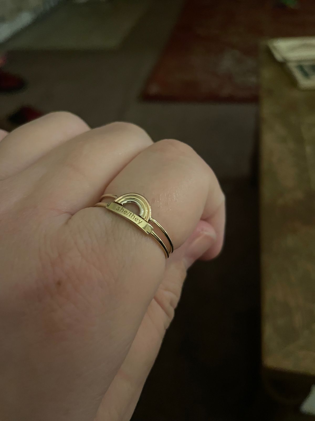 Honestly, I feel like the pictures don’t do it justice. Don’t get me wrong. I was in love with the ring from the pictures, but in person it’s even better. Super shiny, with wonderful contrast between the golds. Barely feel it on, 10/10