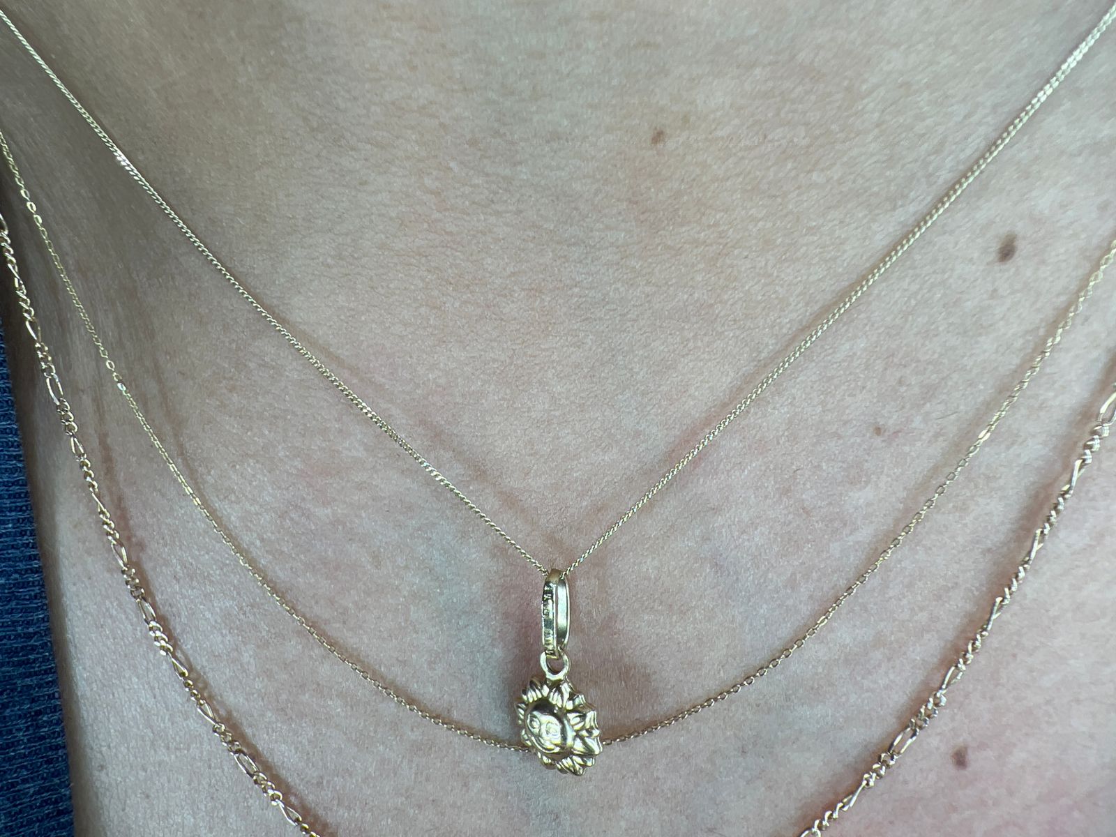 The essential chain has a minimalistic but beautiful design that is lightweight and subtle. Wear this 14 karat gold chain alone or with our other gold necklaces for a cool layered look. You’ll never want to take this delicate chain necklace off! Secures with a spring ring clasp and easy-to-grip Automic Gold AU plate.