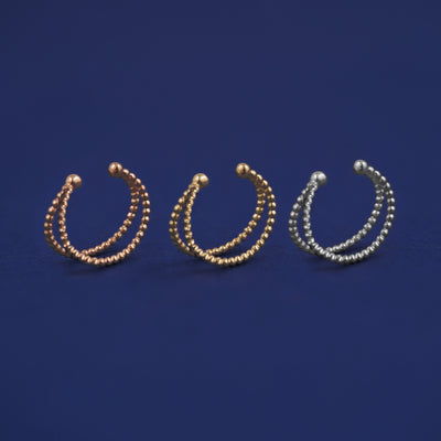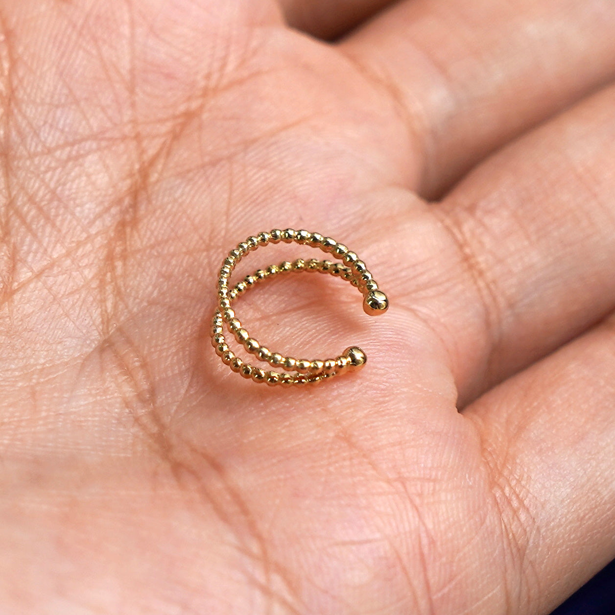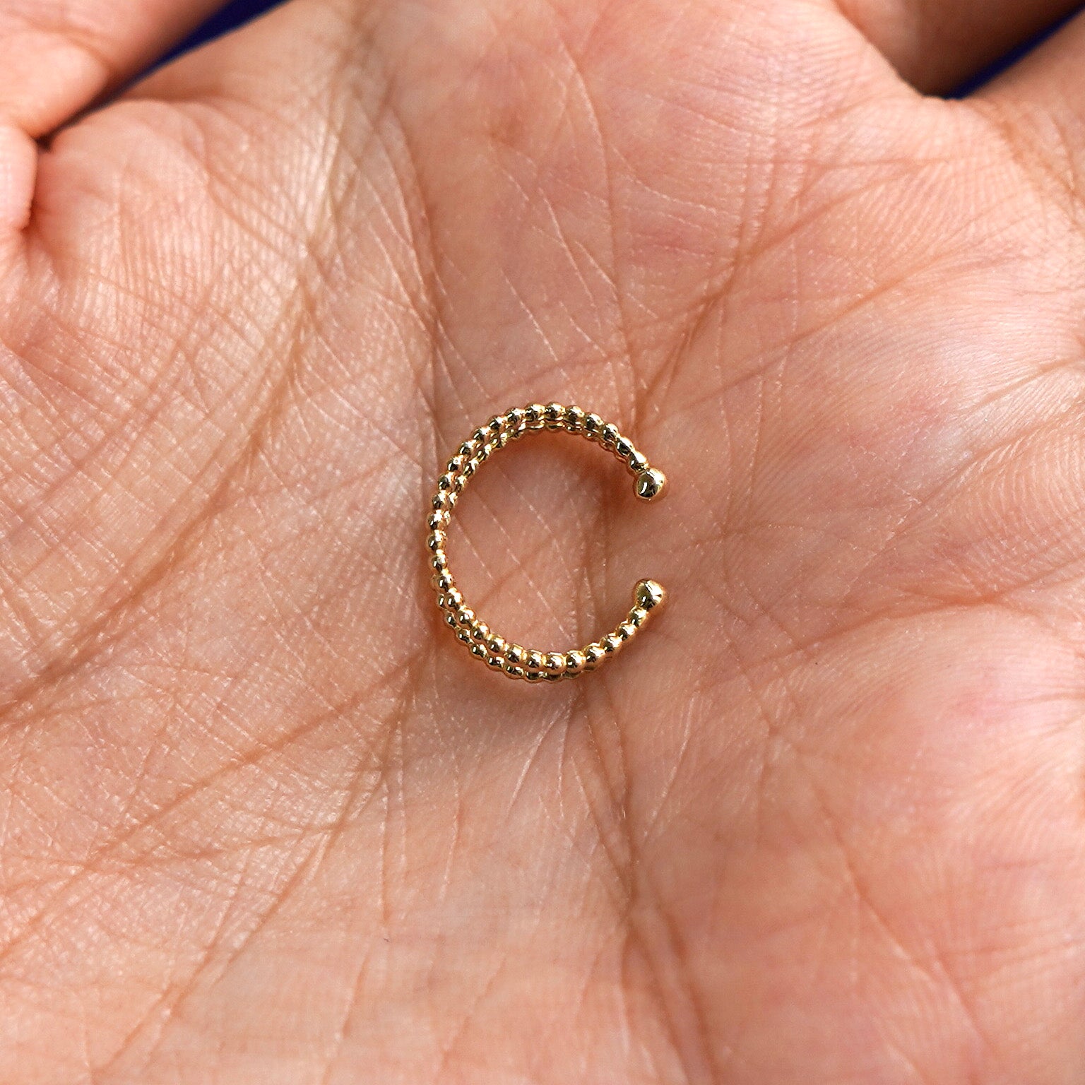 No piercing required for this sweet little Cuff Earring. The beaded design of this non-pierced earring can add soft and comfy texture to your style. Our 14k solid gold ear cuff easily hooks onto your ear so you can get creative and wear this delicate cartilage earring however you want.