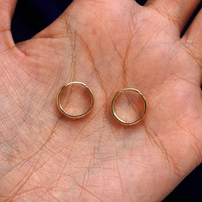 I spent about a year looking for the perfect size hoop for me and this is it. I love the width of them and the 15mm circumference is what I wanted. One clips open and closed easier than the other. But they are hand made and they look amazing. I like that someone put their time and experience into making these. They really are beautiful. Thank you for making these! ❤️