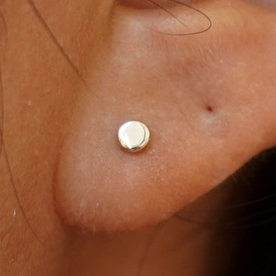 Take your minimalist style up a notch with a size that fits first and secondary piercings. Our circle stud earrings are designed to be flat and thick for the perfect fit. For a modern look, style these dainty 14k solid gold studs with our ear jackets or threader earrings. From high noon to happy hour, effortless cool is all yours with these masters of minimalism.