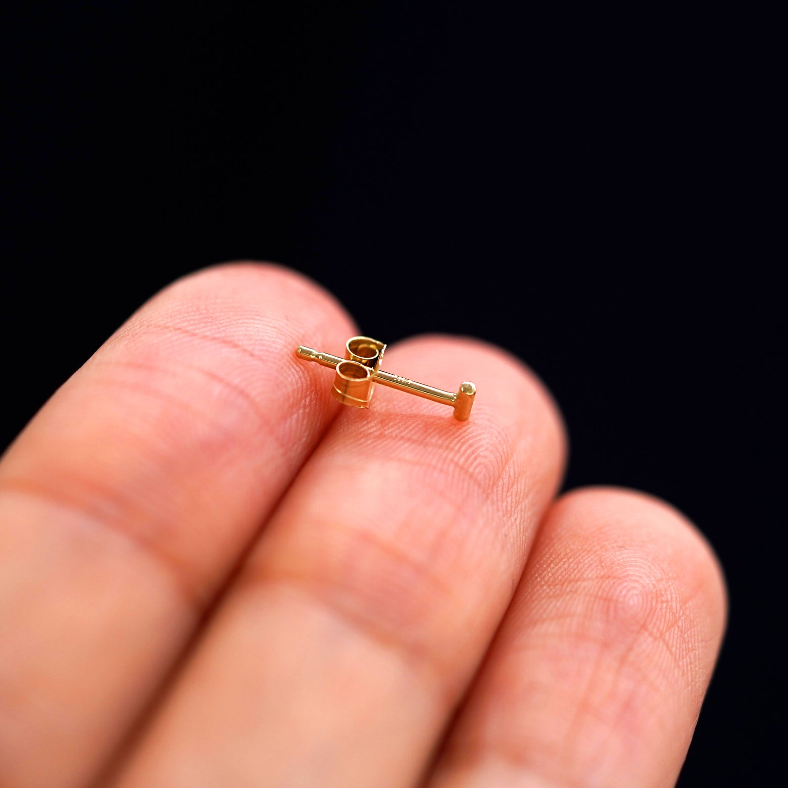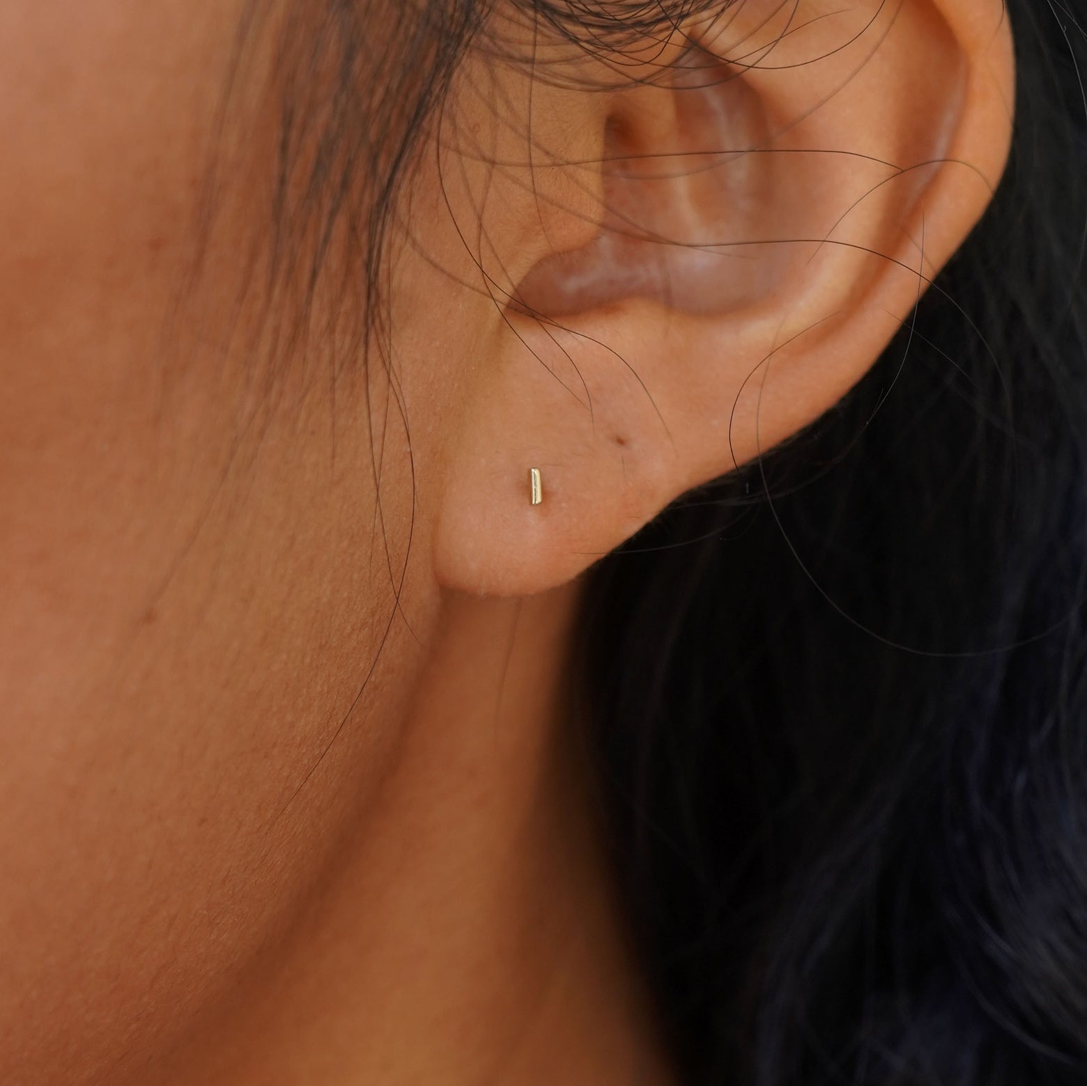 If subtle’s your name, these cuties are your game. The ultimate in minimalist jewelry, these dainty studs add just a hint of style. Our small line stud earrings. the smallest of the Line Earrings, are subtle and sleek on their own but look great when styled with our other 14k solid gold earrings. From formal affairs to casual Fridays, these tiny tots work with any look.