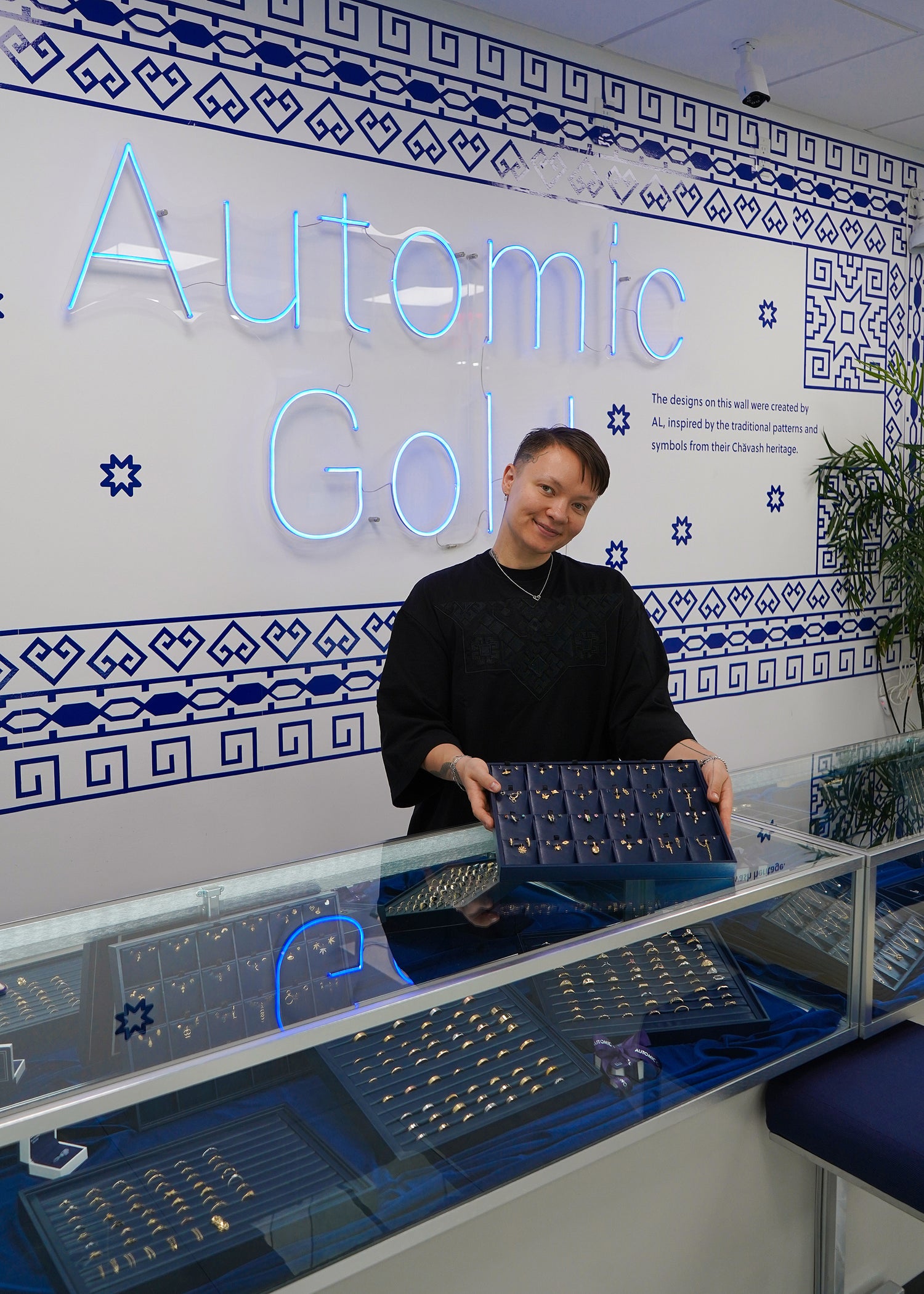 AL Sandimir is the founder of Automic Gold. A metalsmith and jewelry designer dedicated to making ethical, comfortable, and size-inclusive fine jewelry.