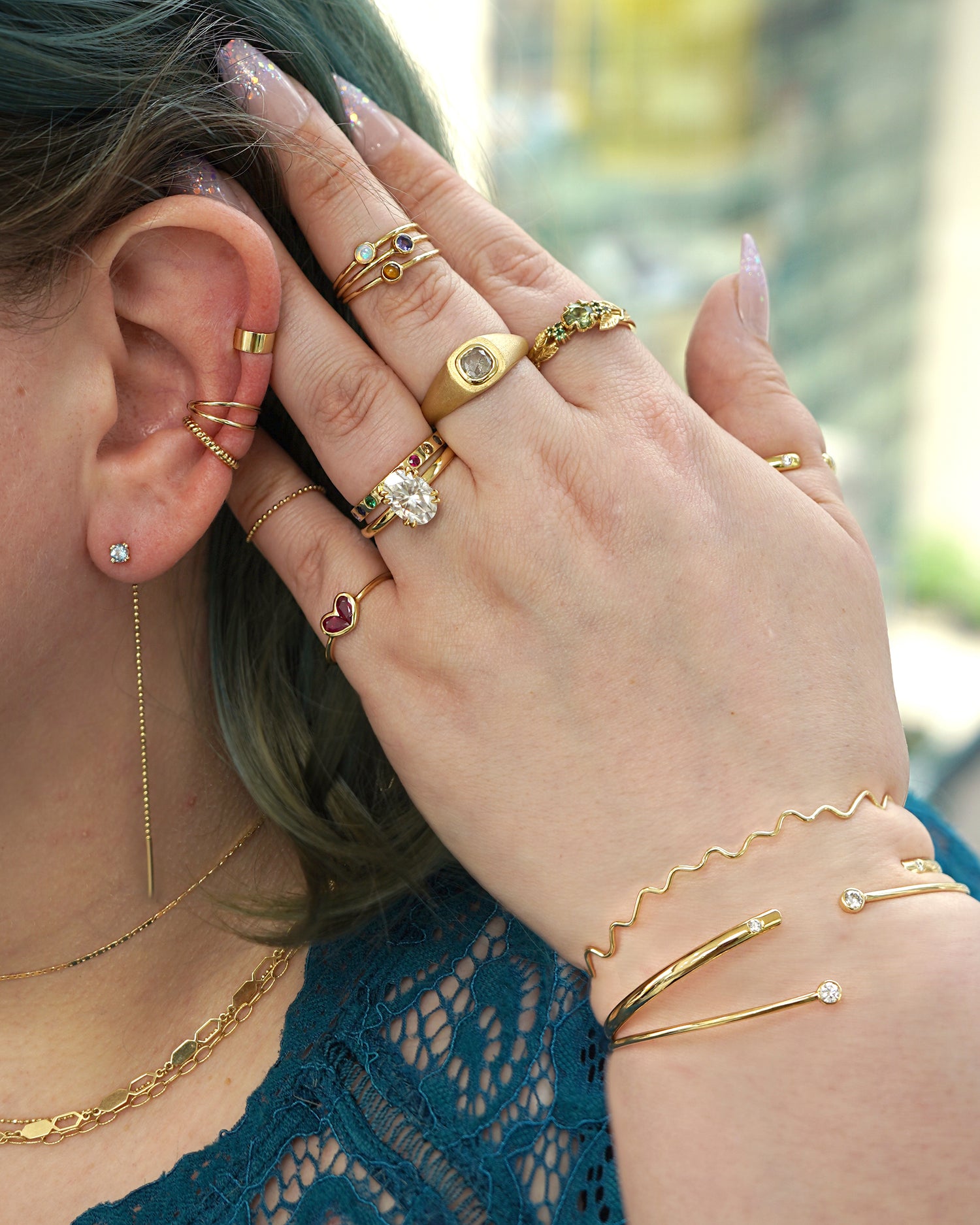 Automic Gold is a queer, trans-owned fine jewelry company that creates timeless, genderless pieces. Working only with sustainable and durable materials, we handcraft our jewelry in recycled solid 14k gold and platinum with reclaimed and/or ethically sourced diamonds and gemstones. Each piece is handmade in NYC by our expert jewelers and designed with comfort and inclusivity in mind. From everyday rings to engagement rings we are still the only fine jewelry brand to carry inclusive sizes from 2-16. We create a wide range of high-quality jewelry from chic stud earrings, versatile charms, and classic chains, to our signature pieces like our threaders and Tanlah collection. We can also help you create nameplates and custom jewelry to fit your unique and personal style.