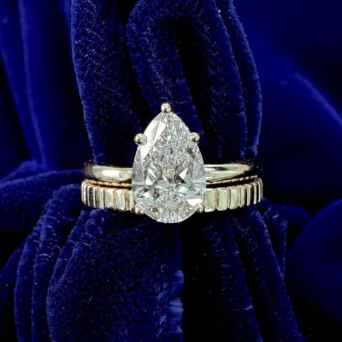 14k yellow gold • 2.75ct pear + 0.50ct round lab diamond • 4mm industrial band • size 4.7