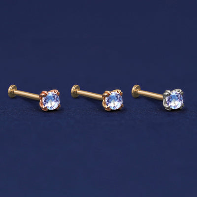 Comes with a 14k solid yellow gold flat back, which is 1.3mm thick (16 gauge) with a 3mm circle end