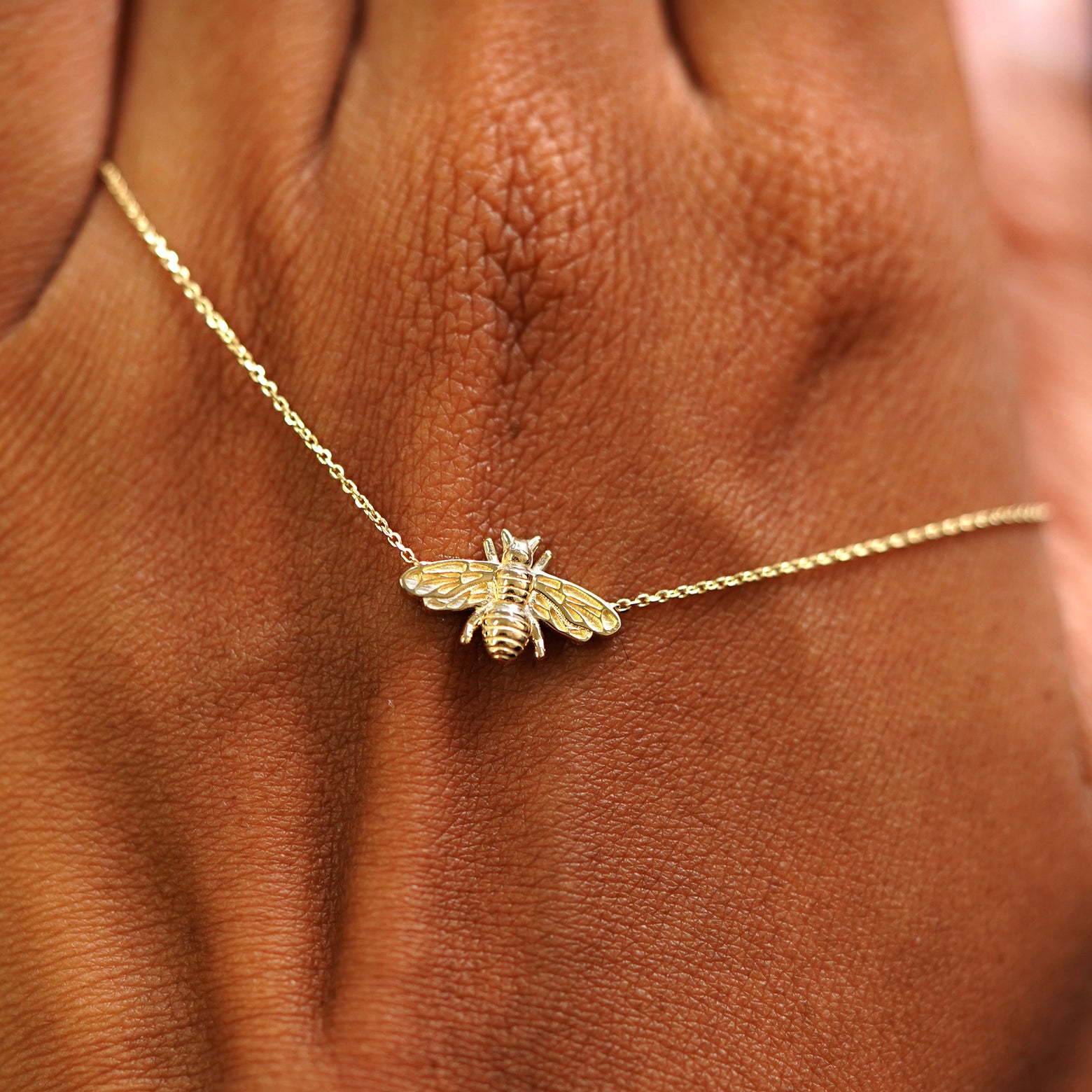 This is one of my first jewelry purchases for myself and I couldn’t bee (lol) happier. I ordered the 15” and it was a bit tight for my thicc neck. Exchanging for the 17” was easy and painless. I love my necklace and the way it looks. I work in the trades and have accidentally caught it a few times and the strength of the chain and craftsmanship are nothing to bat an eye at. Steadfast and elegant. A timeless start to my shiny adventure ❤️