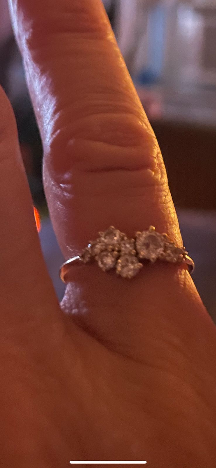 Underside view of a solid 14k gold Diamond Cluster Ring