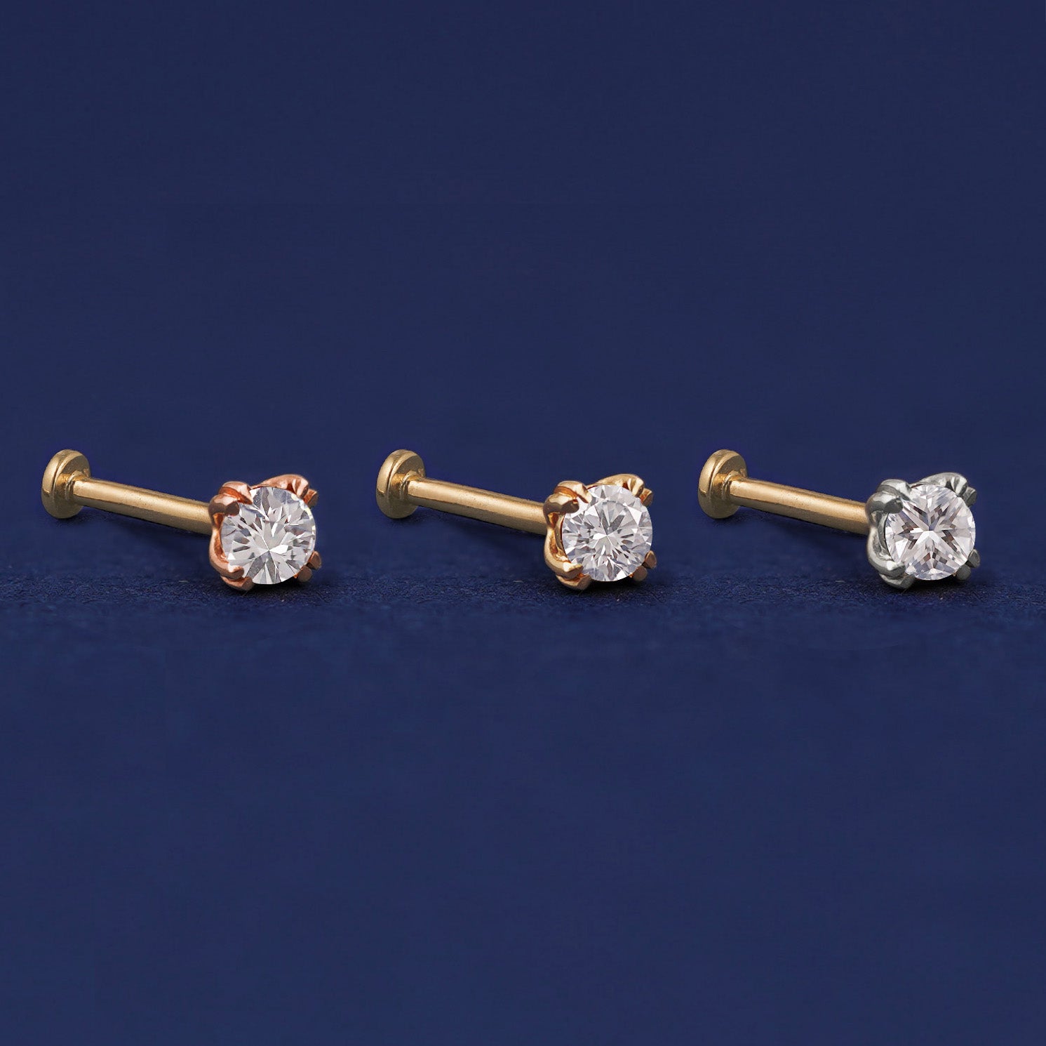 This dazzling, threadless diamond stud piercing is a delicate babe that’s an old soul. Made from recycled solid 14k gold and a reclaimed natural diamond, you can wear this April birthstone earring in good comfort and good conscience. Our flat backs are crafted only in 14k yellow gold to avoid sensitivity.