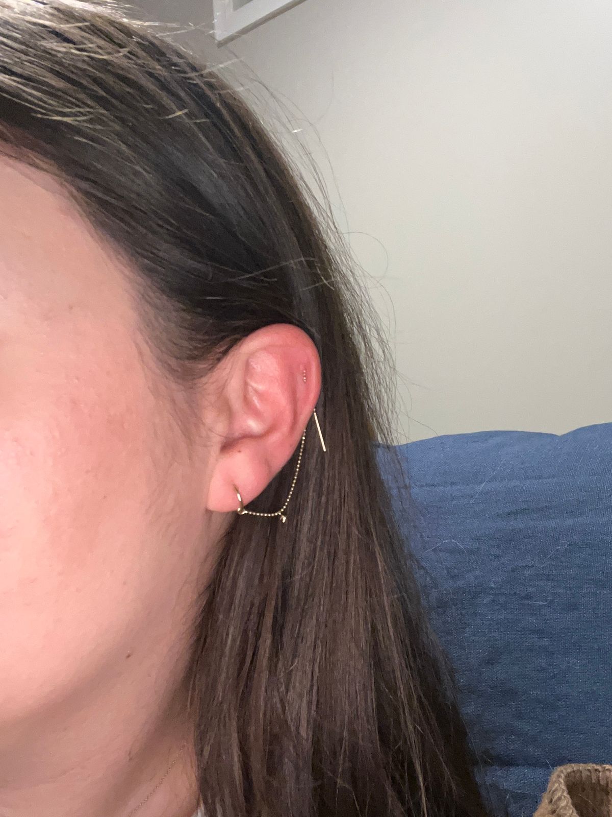 Nothing I wore in my top two cartilage piercings was comfortable. I tried the mini seamless hoops, flat backed/ small studs, and nothing was comfortable to sleep in. I got the extender and have it paired with a seamless hoop & birthstone charm in my earlobe piercing. I get SO many complements on it, and it’s so comfy. I wear it everyday and it’s only gotten snagged a handful of times when brushing my hair. 10/10 would recommend.