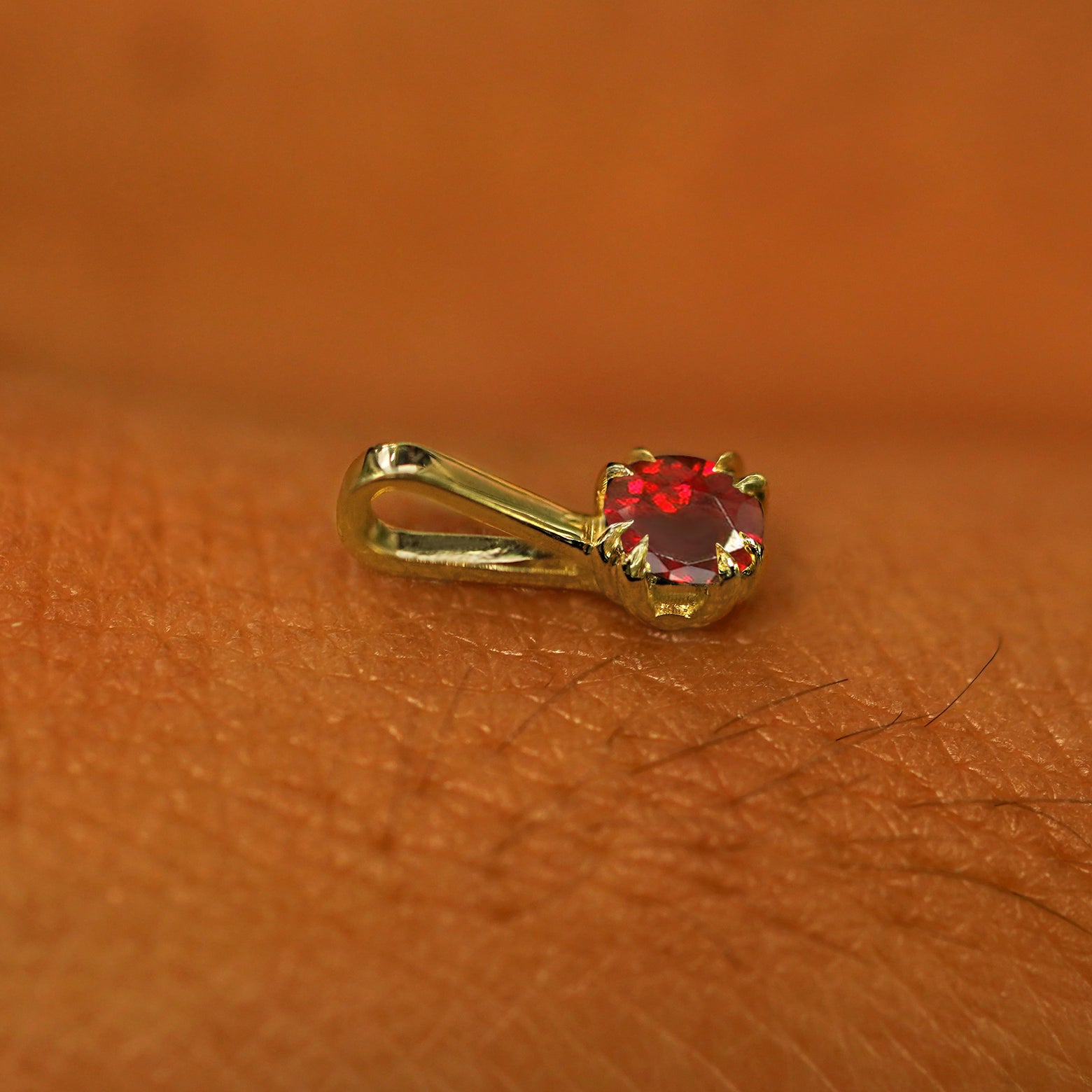 The radiant red of our Garnet charm is eye-catching head-turning and oh so beautiful. This dainty piece of January birthstone jewelry is the perfect pop of color to add to your favorite outfit. Our 14k solid gold gemstone charms make a great little addition to your chain, bracelet or hoop earrings