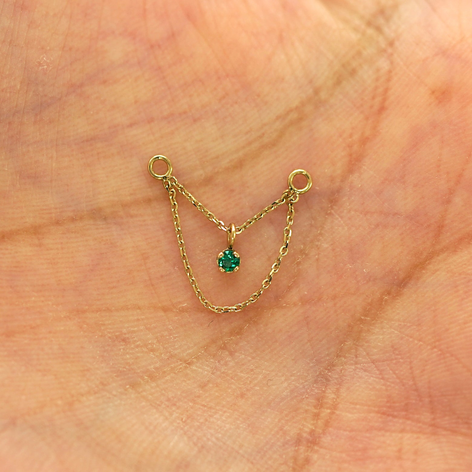 This cool double cable chain connector lets you switch up your look by adding extra sparkle to your 14k gold earrings. Choose your birthstone, your favorite gem, or just your favorite color, our gemstone ear jackets have the perfect hue for you. Sustainable shine that comes with peace of mind, our dainty cable chain connector is made with recycled 14k gold.