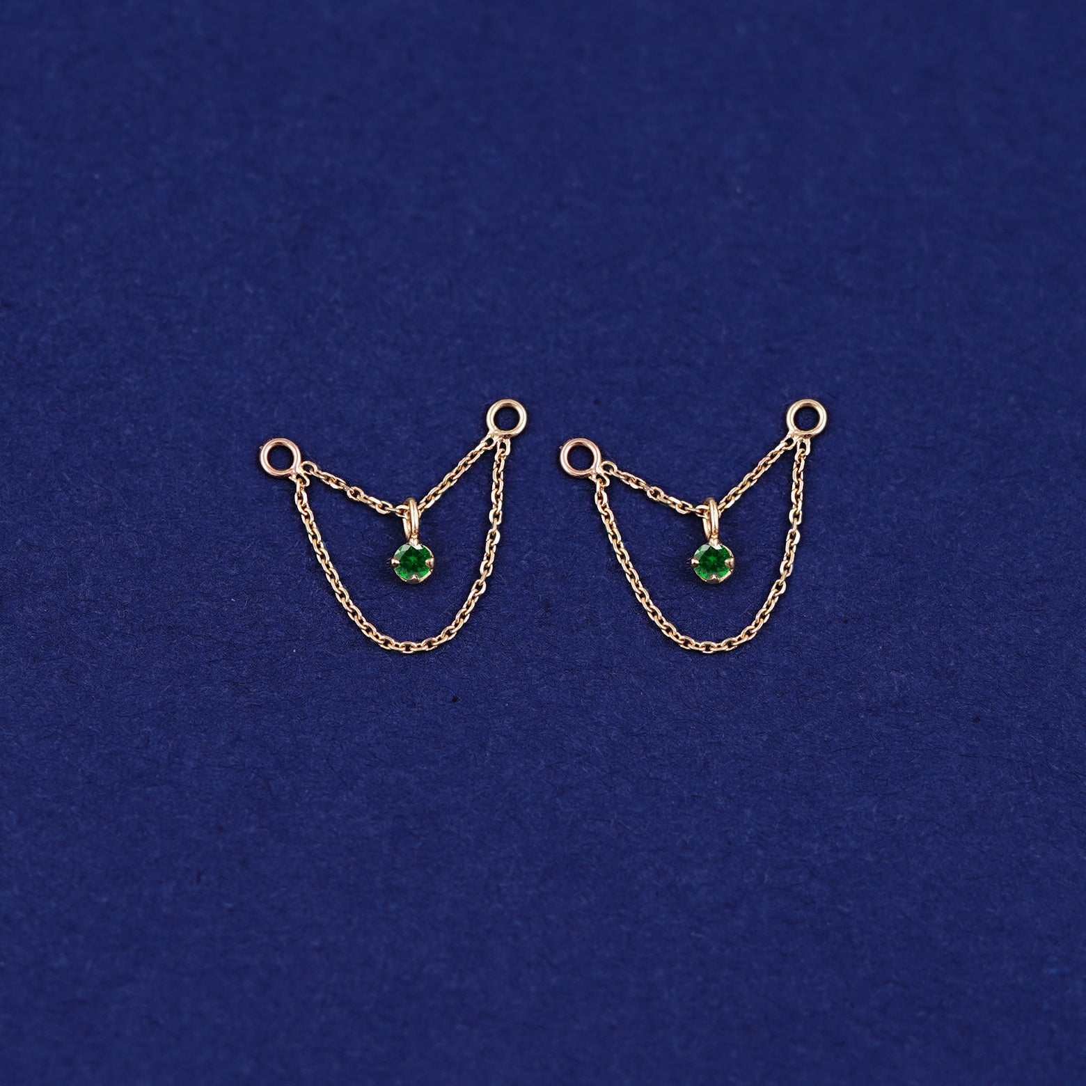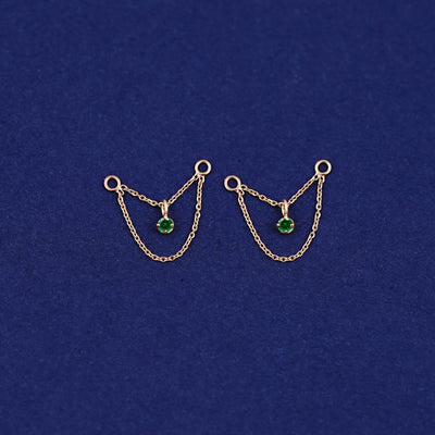A pair of 14 karat solid gold emerald Cable Chain Connector earrings