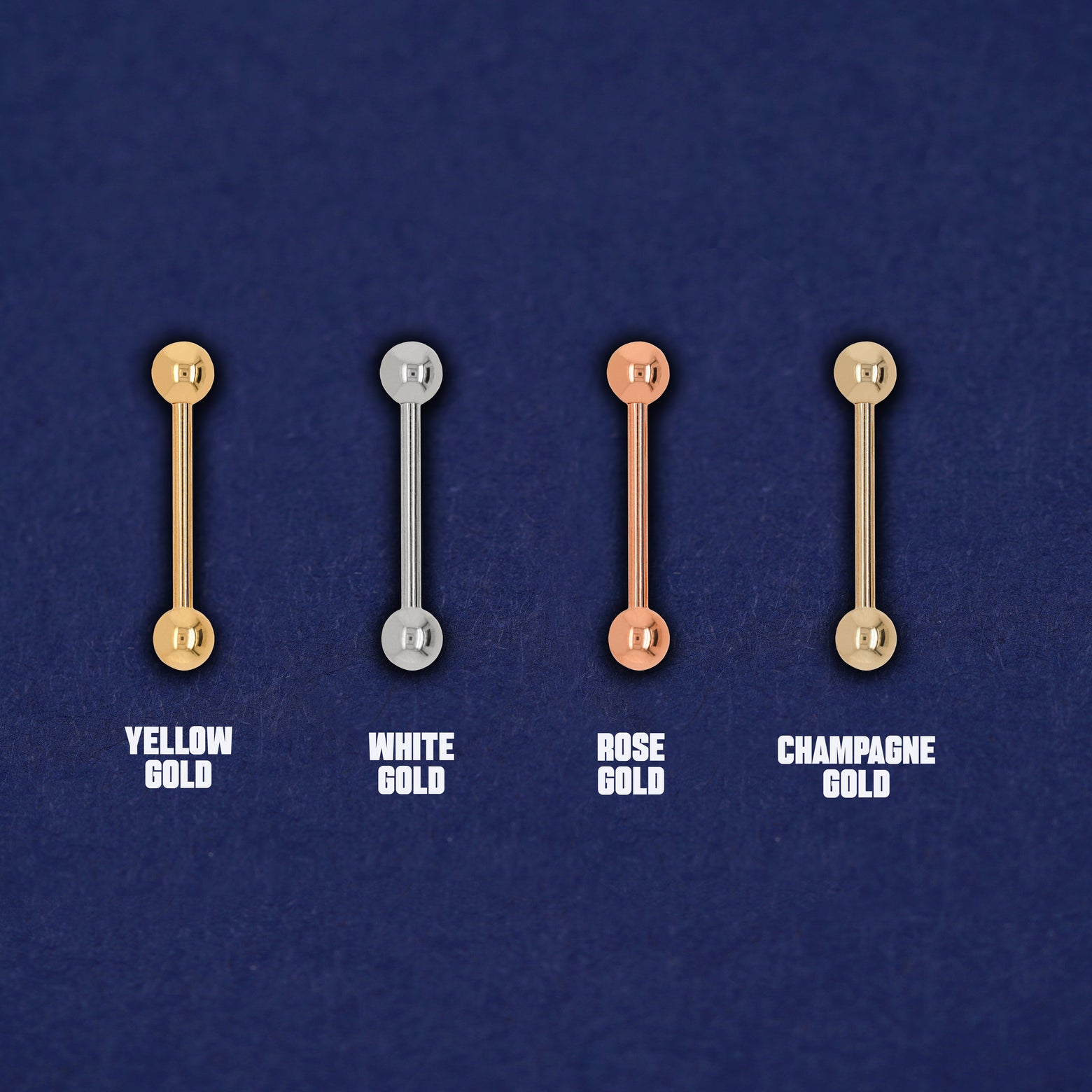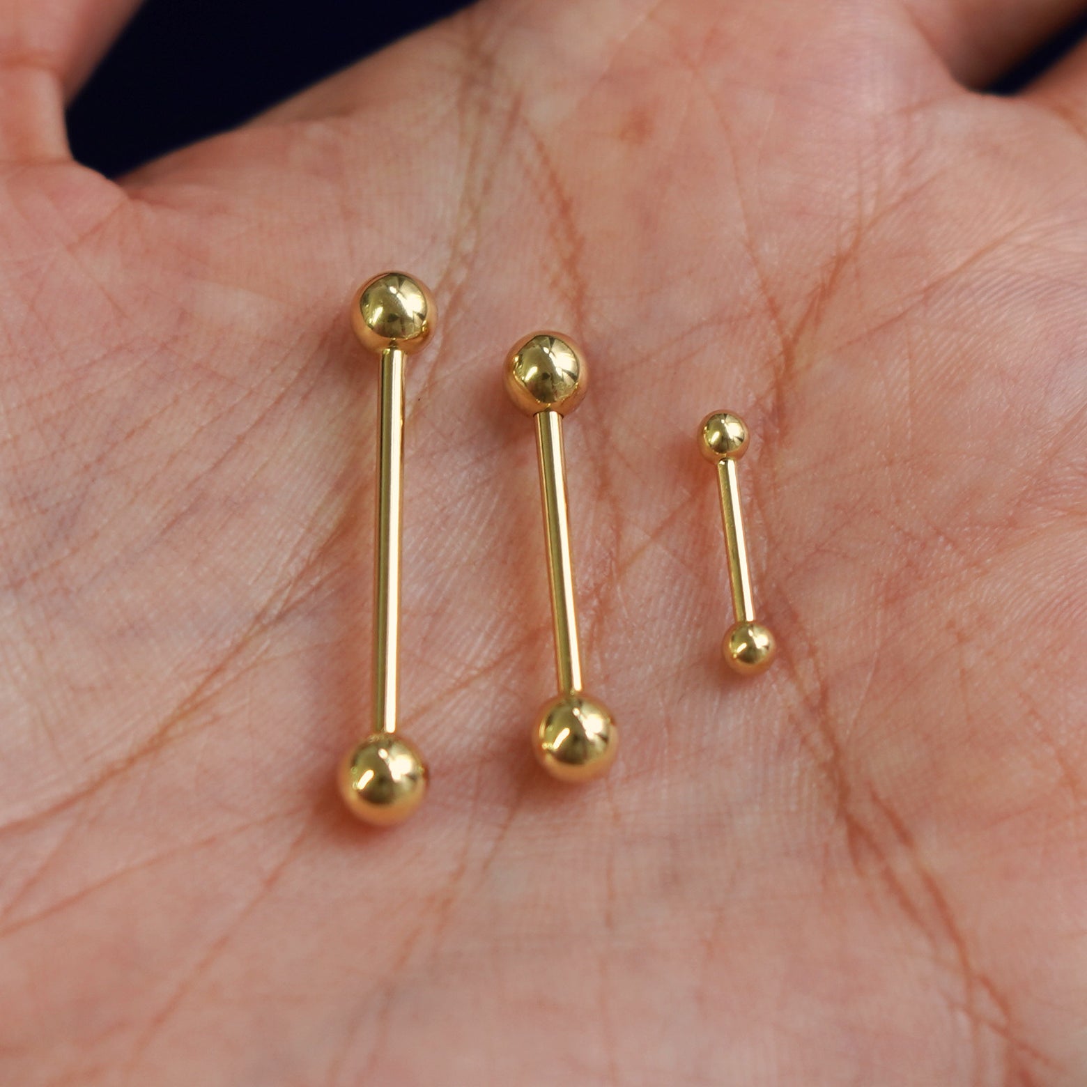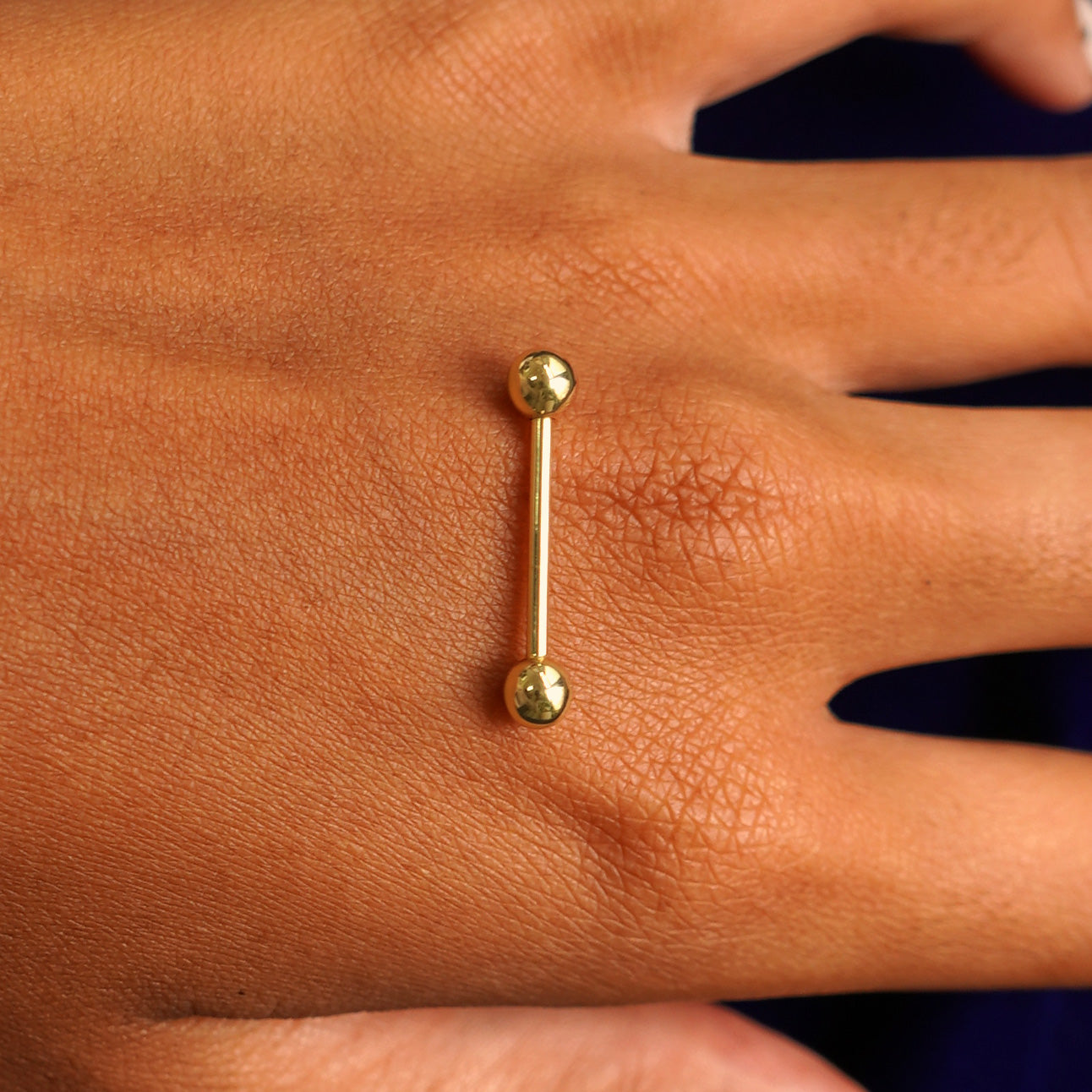 I ordered two of these because I've had my nipples pierced for 10 years now, and I only wear gold jewelry but somehow had not yet managed to go through with purchasing 14k gold nipple bars.. until Automic Gold! These are everything I could have ever dreamed and hoped for. The medium length is perfect, not too short to where it's uncomfortable but not too long to where it snags on lace bras, loofahs, etc. My favorite thing about these bars is that only one side unscrews. This is a life saver and in the past, I've had nipple bars where both balls unscrewed on either end which meant they would get loose and I would always end up losing at least one. With these, I can just check the tightness of each one and I only have to worry about the one ball on each side. Additionally, the balls haven't even gotten loose and I wear these nonstop, 24/7. I also love that even up close you can't tell that one end is shaped into a ball and doesn't unscrew. It looks identical to the side that does unscrew, so they are aesthetically pleasing and just super practical.