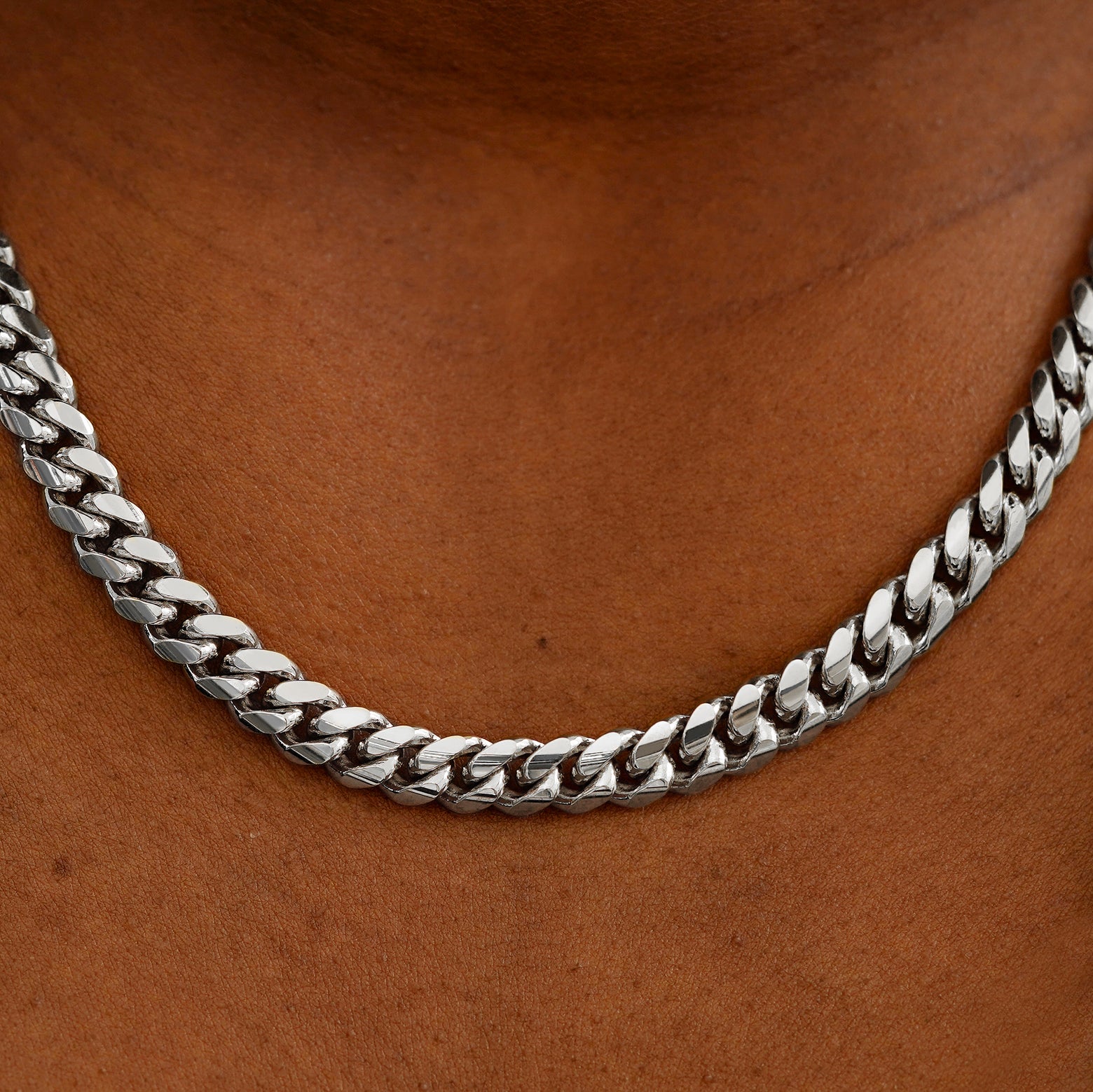 This graphic shows how the same length chains could possibly hang on three different body types.