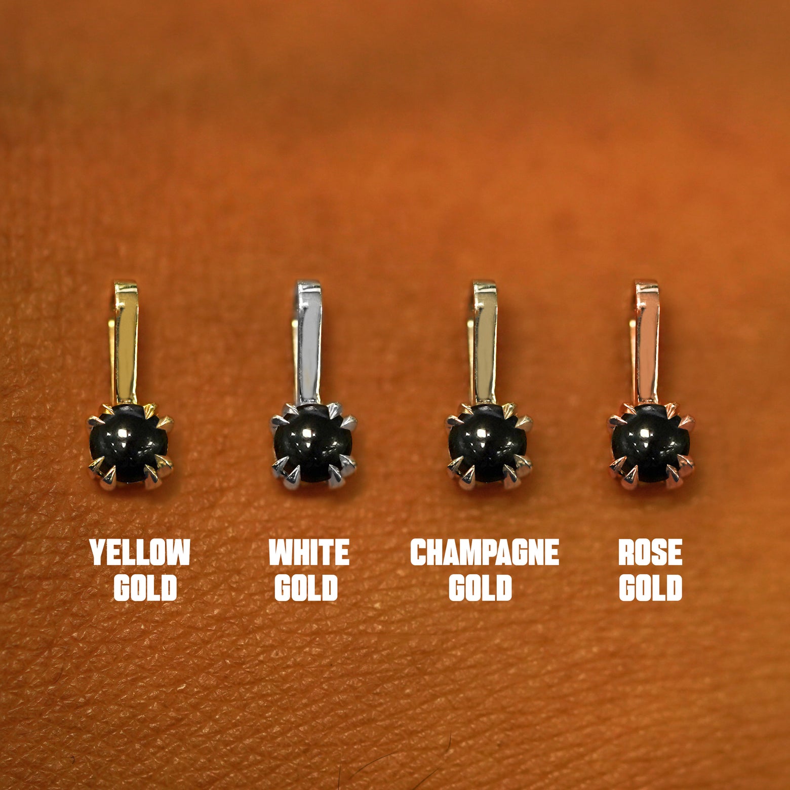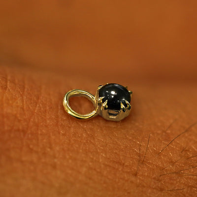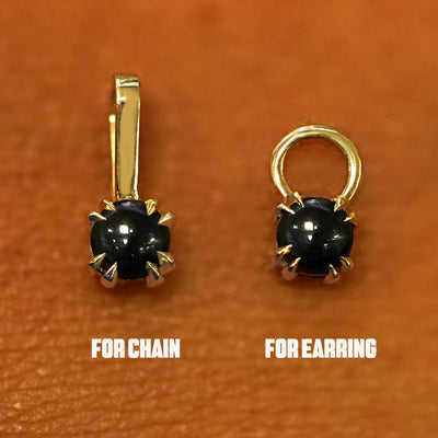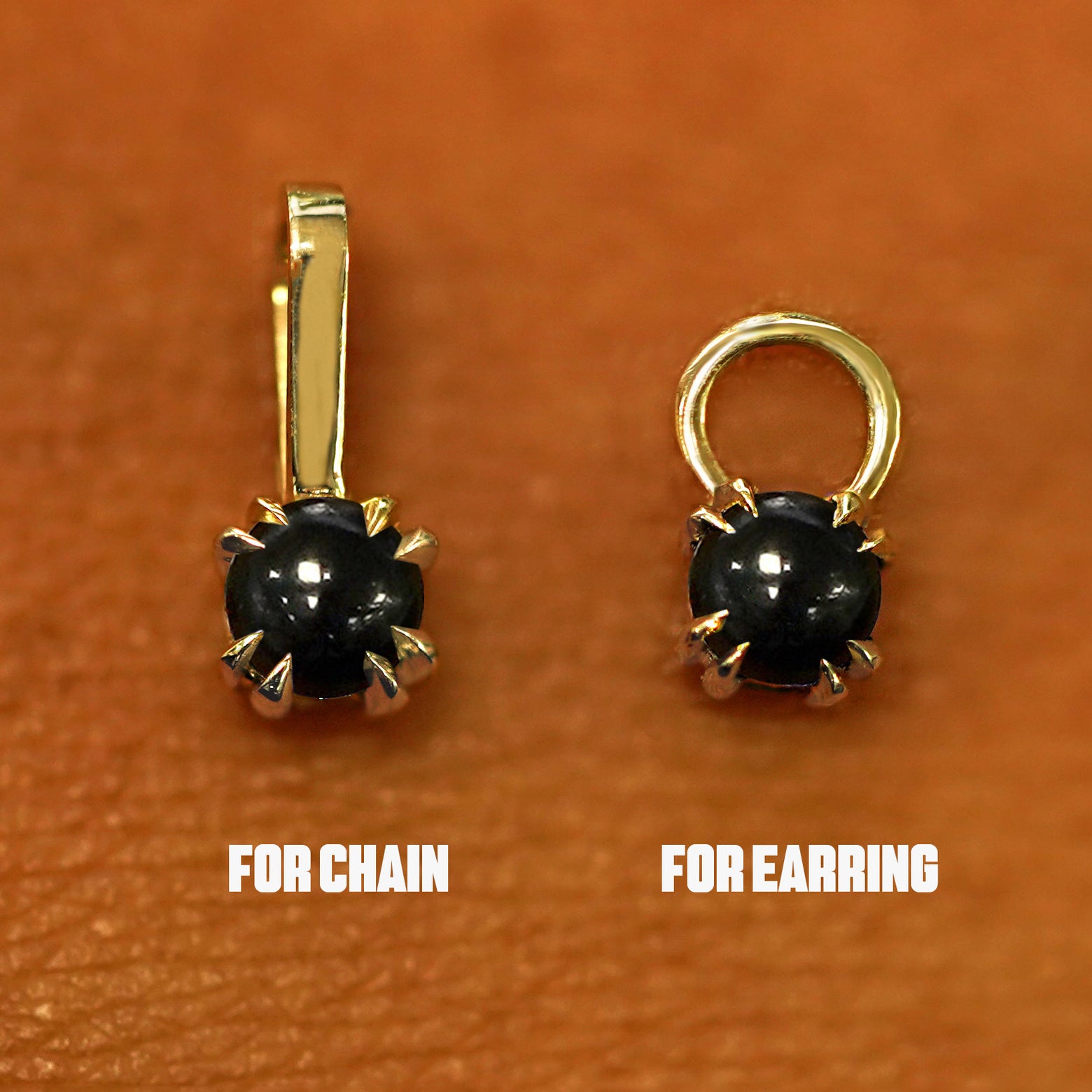 Black Onyx is said to be a powerful protection stone, so banish those negative vibes with this positively beautiful cabochon gemstone charm. Whether you're out for the night or having a weekend in, wear our delicate black onyx charm everywhere you go. Wear this little beauty as a charm bracelet, a pendant, or on a hoop earring. This Onyx charm is a 14k solid gold investment.