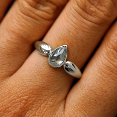 Pear Cabochon Salt and Pepper Diamond Teardrop Ring