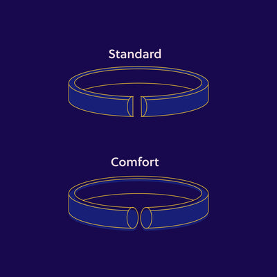 Our comfort fit band has a rounded inside edge so it slides on and off smoothly and its comfortable to wear. Because of the rings design, it’s best to order this ring in your exact size to prevent it from slipping on your finger. To help you find your perfect size you can order our Ring Sizer and check out our ring sizing blog for info.