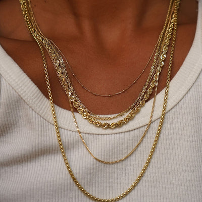 This graphic shows how the same length chains could possibly hang on three different body types.