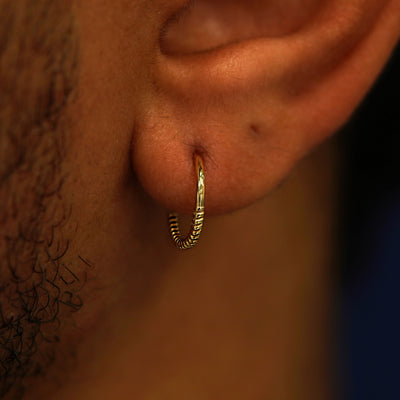 Close up view of a model's ear wearing a Rope Septum as a hoop earring