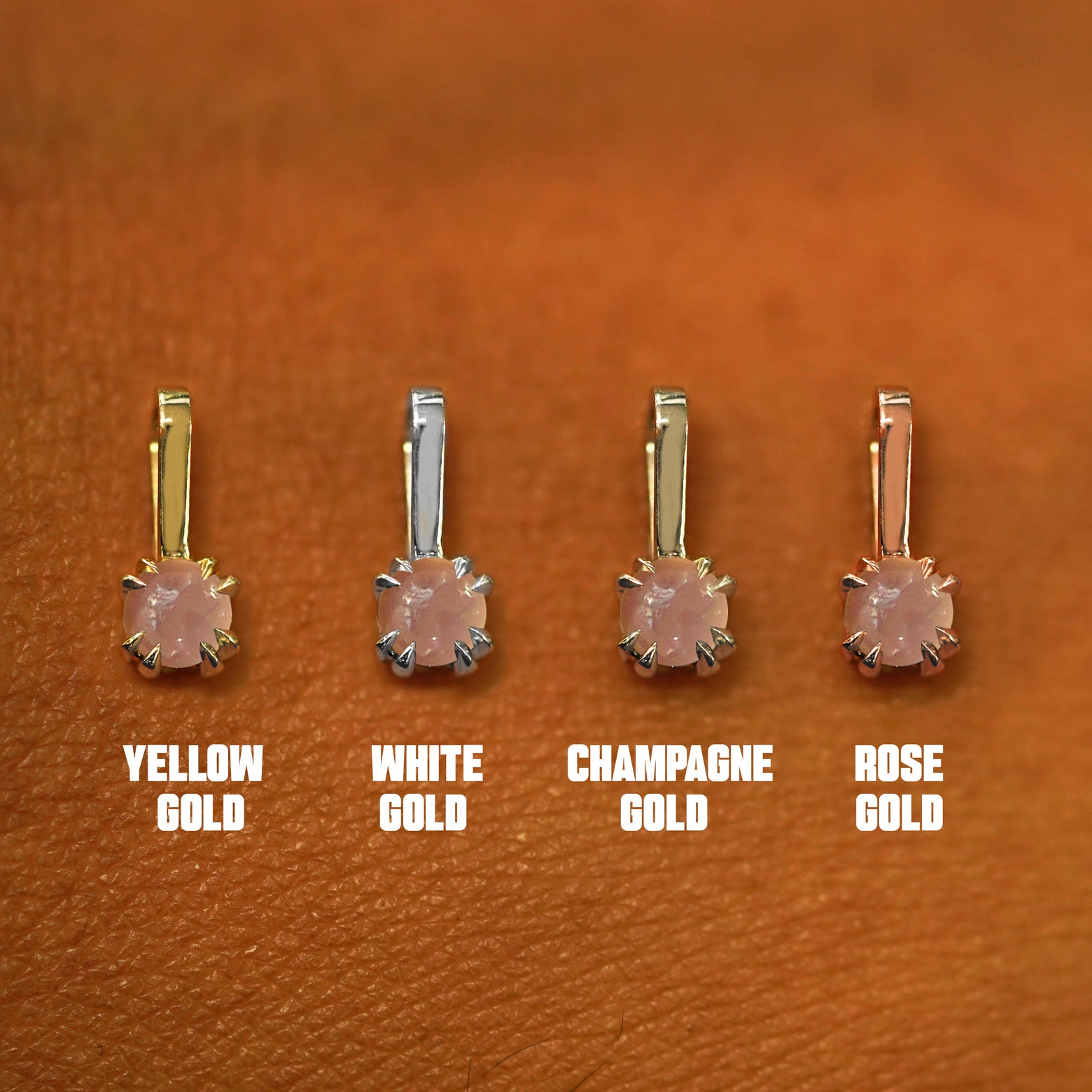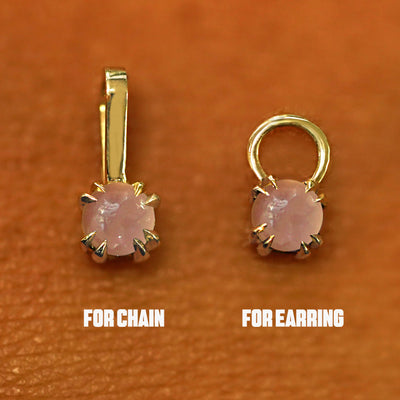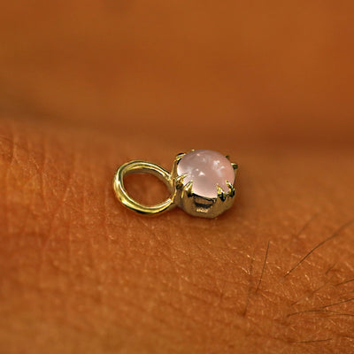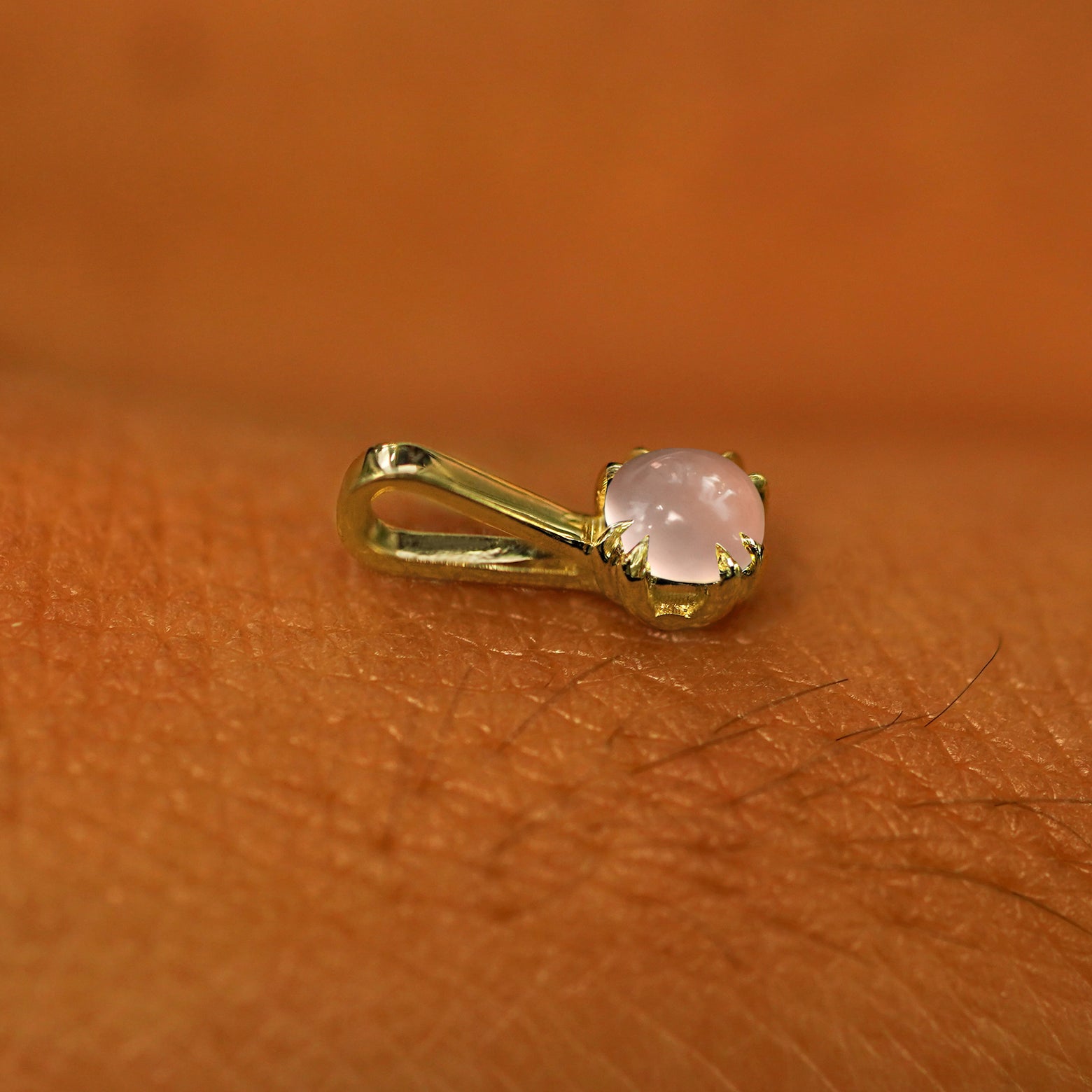 This dainty cabochon gemstone charm is a versatile babe. Wear this rose quartz charm as a little gold pendant necklace or add it to our solid gold hoops to switch up your style.