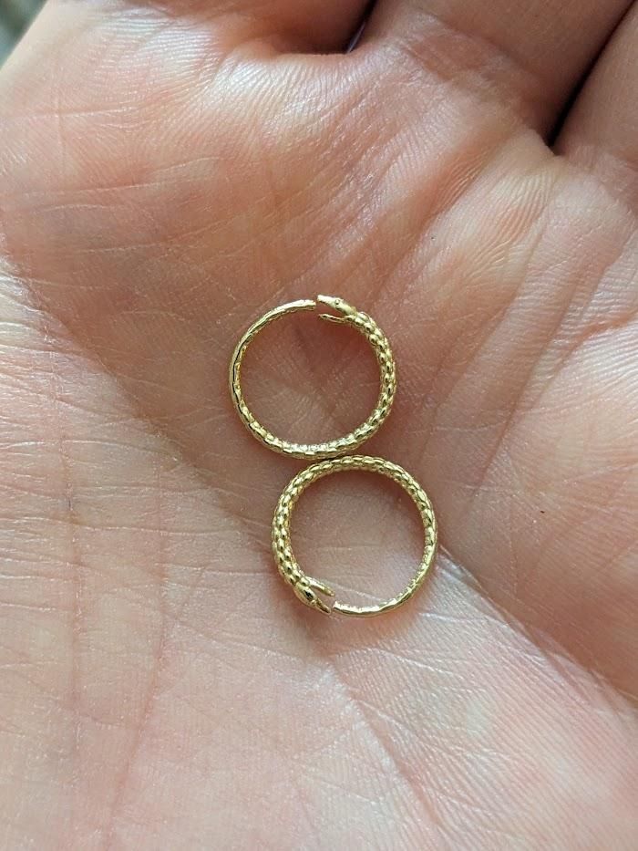 After reading the reviews, I was slightly hesitant if this would work as a septum ring, but after receiving it, I was very happy to see that it works very well as a septum ring. I have a 16 gauge piercing and the ring went in fine, the only caveat is that the wider part of the snake prevents the piece from swinging around. I don’t think that’s a problem tho, as any other piece with a stone or shape to it would do the same thing.