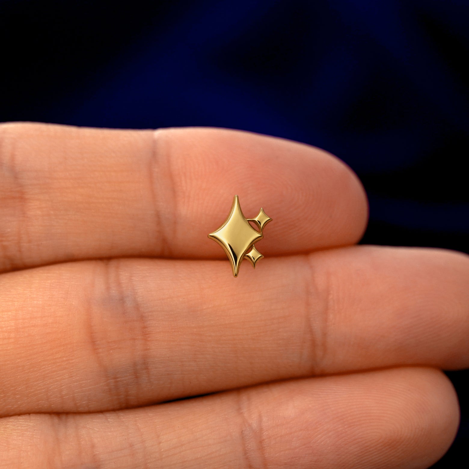 Add a little flair to your look with this whimsical sparkle emoji earring. This piece features a highly polished star accented by two smaller stars. The perfect little stud to let you shine, this stud earring is made with 14k solid gold.