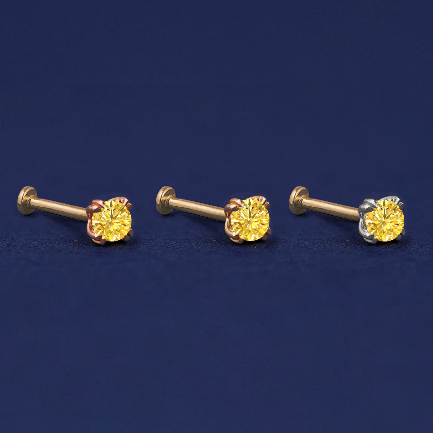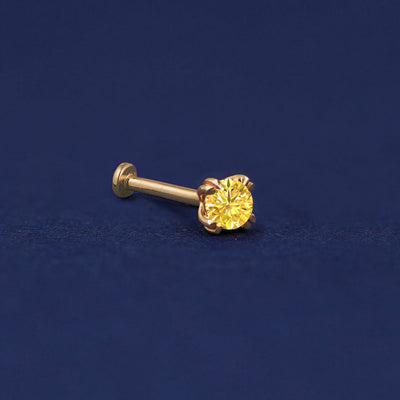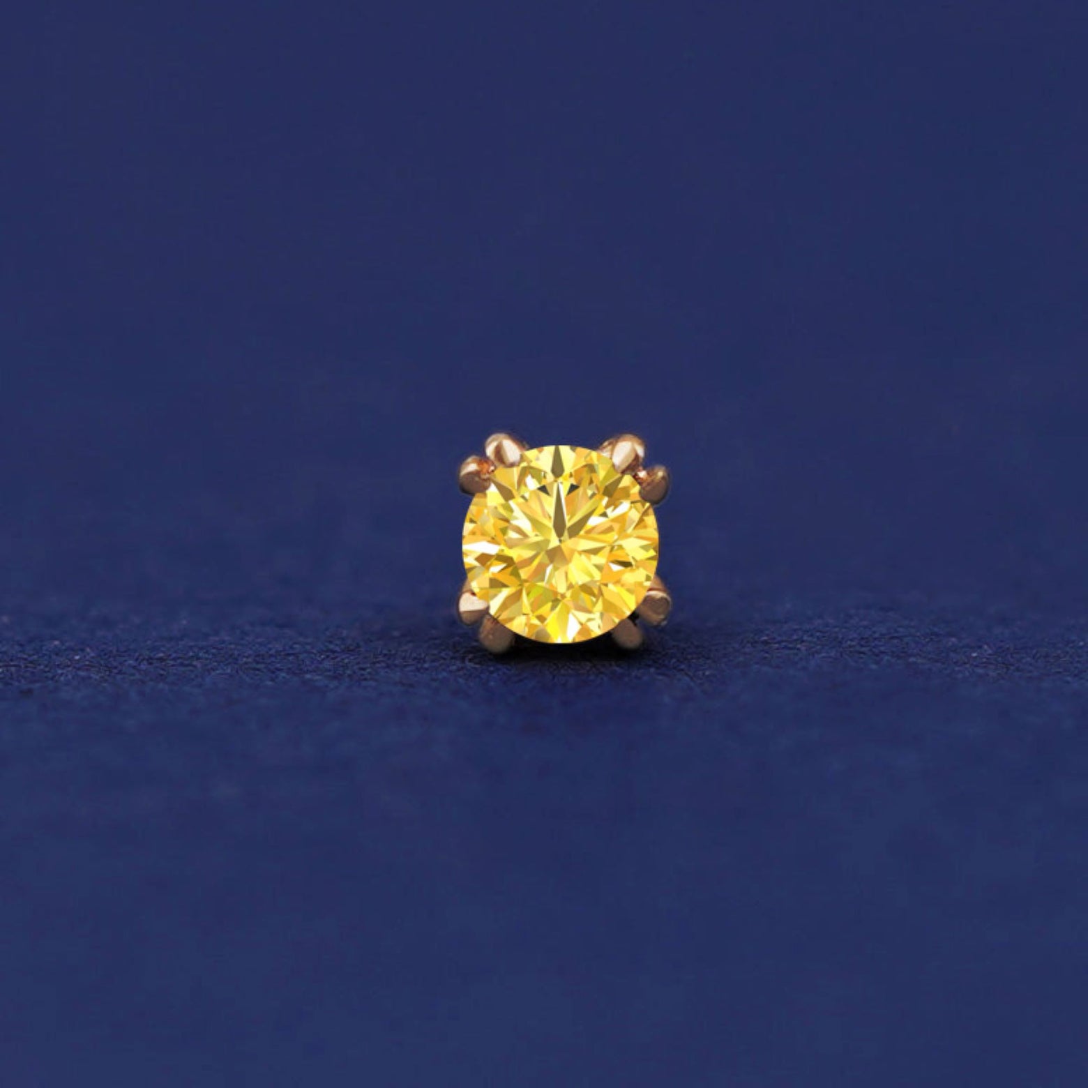 This threadless yellow diamond stud is the ultimate pop of color you’ve been looking for. This flatback piercing is made with recycled solid 14k gold and a reclaimed yellow diamond for a piece that is both strong and sustainable.